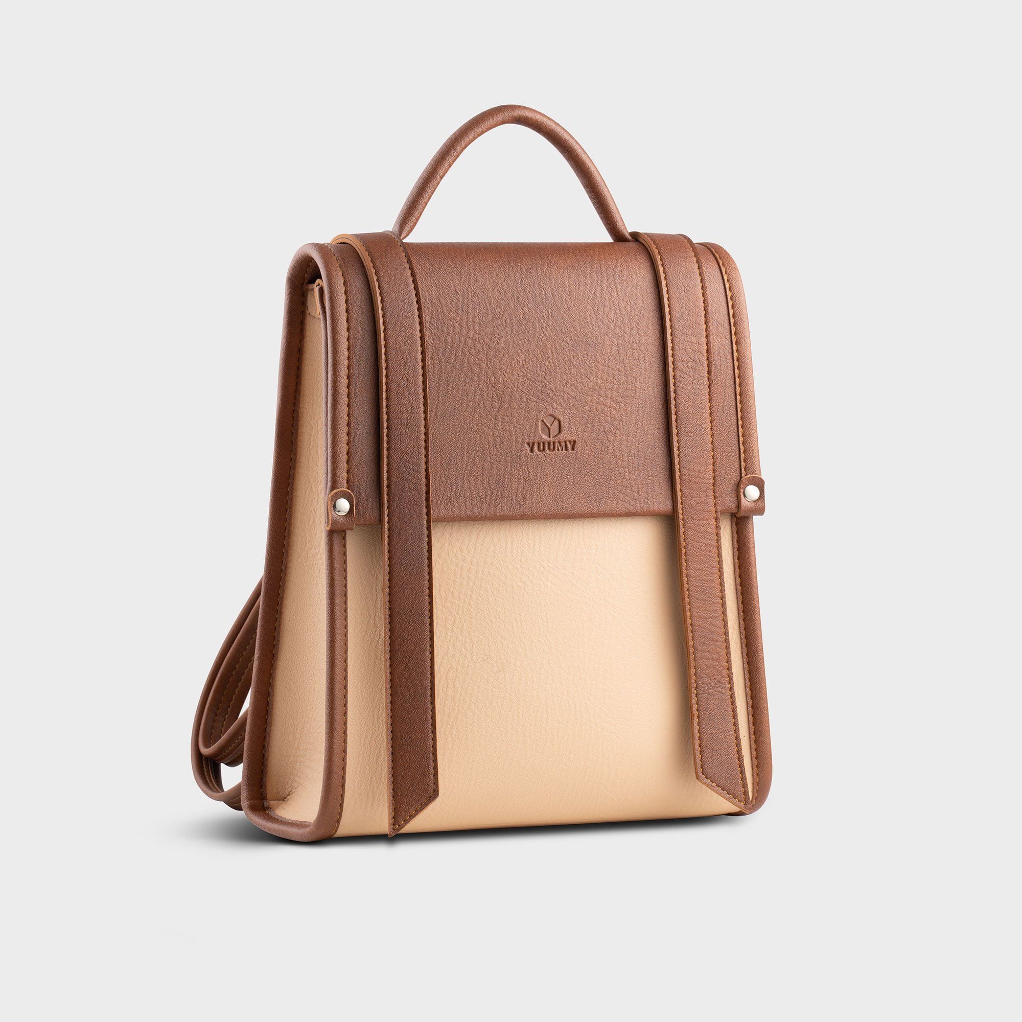 Balo Yuumy ( Thời trang nữ phối màu cỡ trung - Balo da Bergen YBA107K ) - Kem