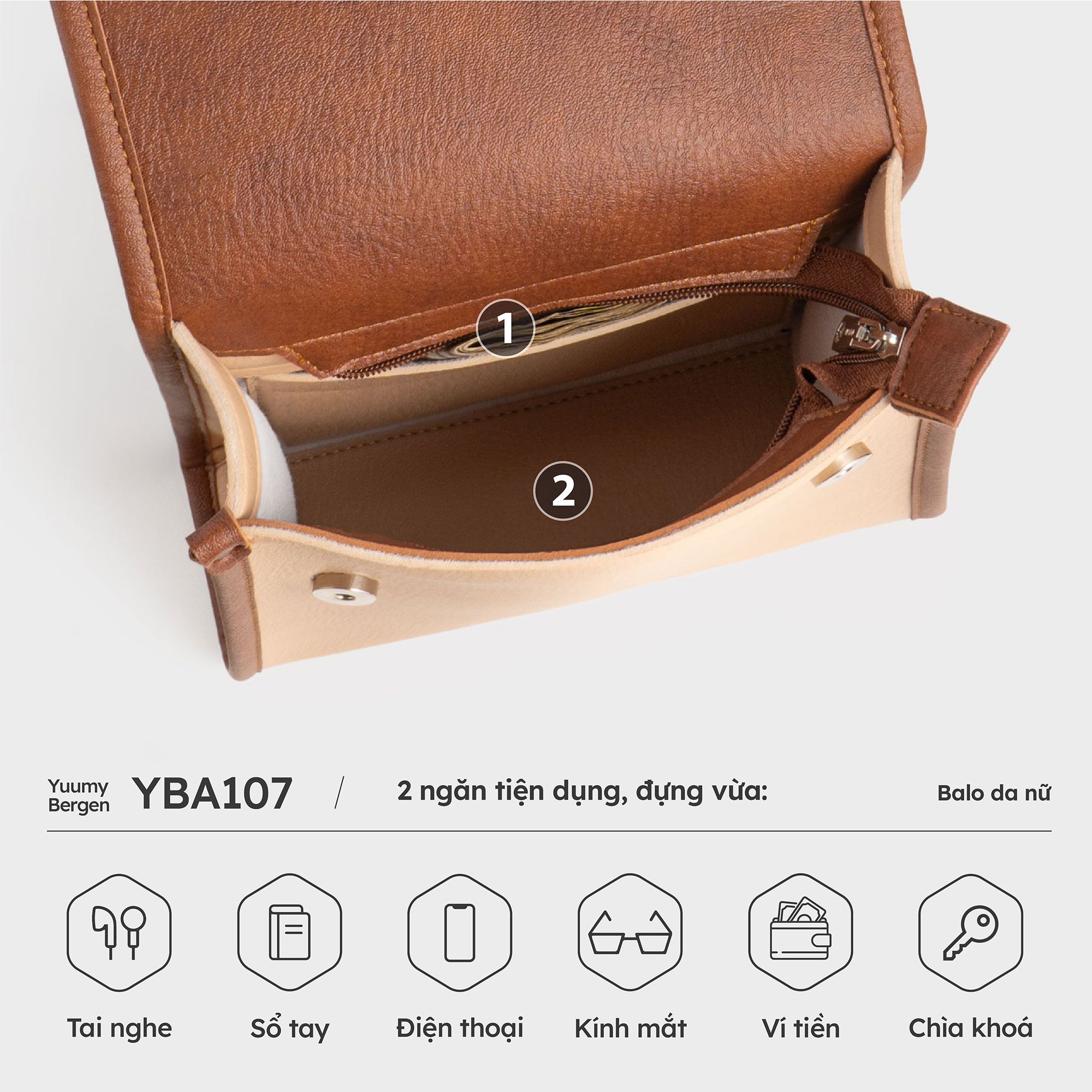 - Số ngăn: 2 ngăn (1 ngăn chính, 1 ngăn phụ)