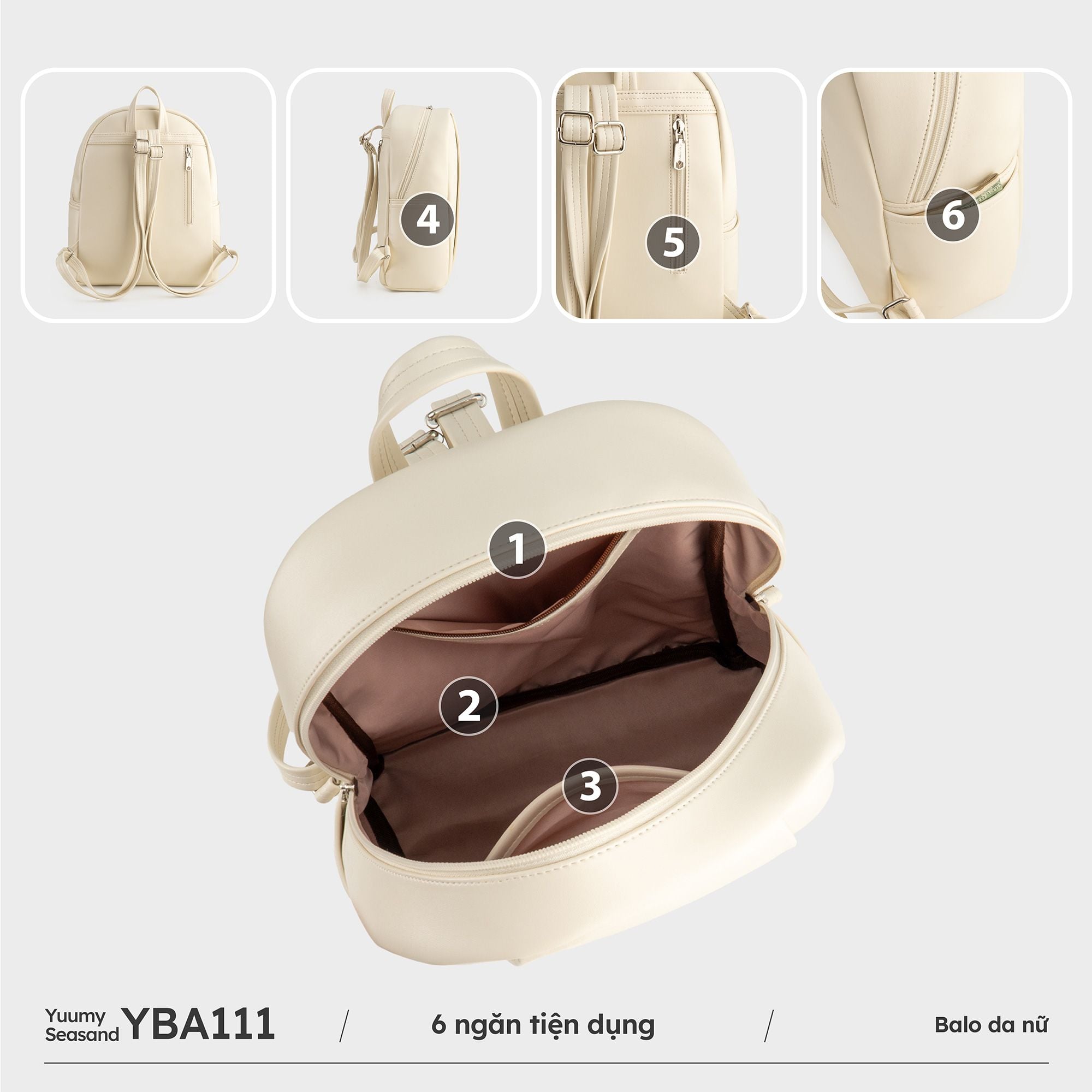 Balo Yuumy (Thời trang nữ basic cỡ lớn - Balo da Seasand YBA111T) màu trắng