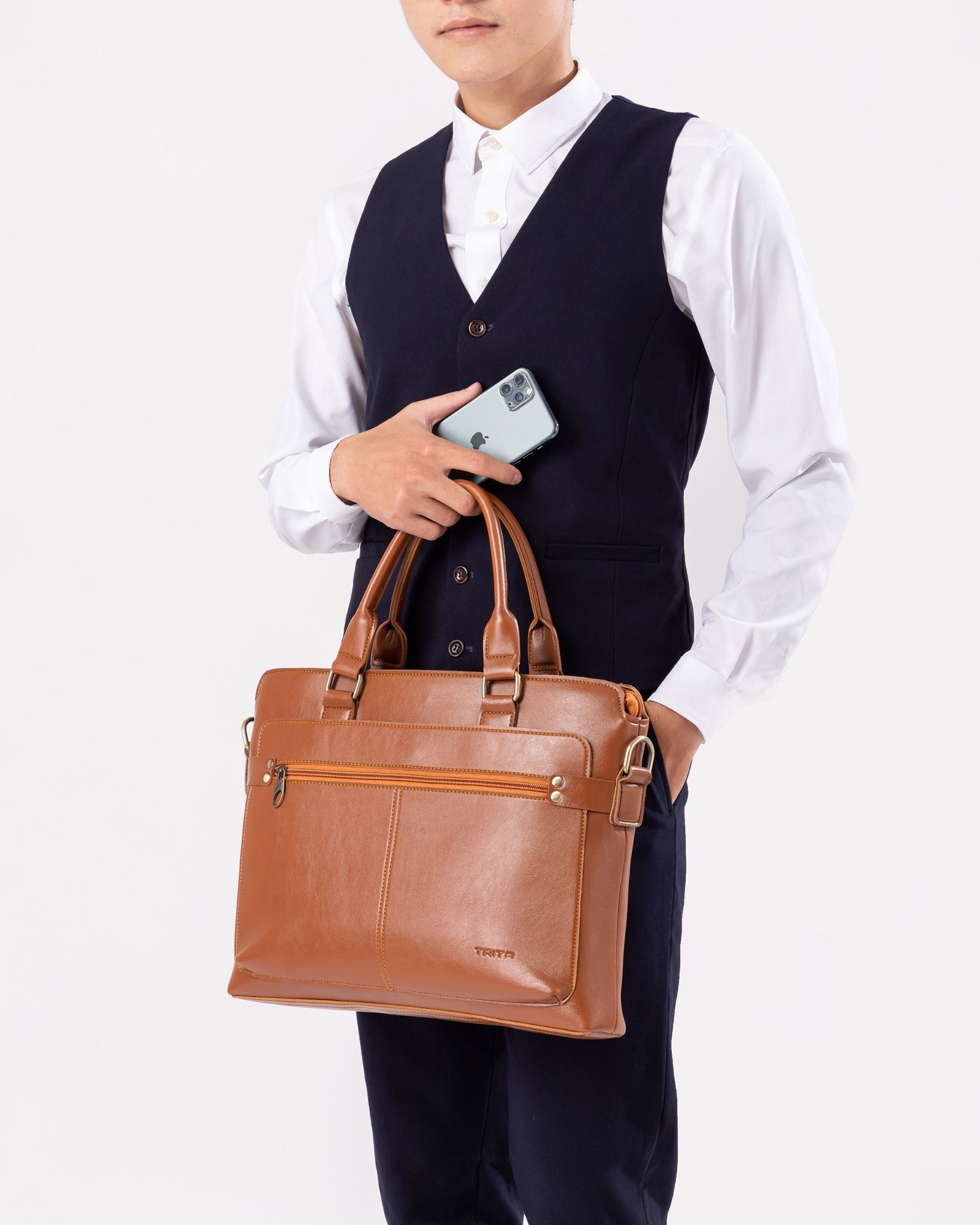 Cặp công sở Trita (Thời trang nam đa năng - Cặp da TCA12B) màu bò