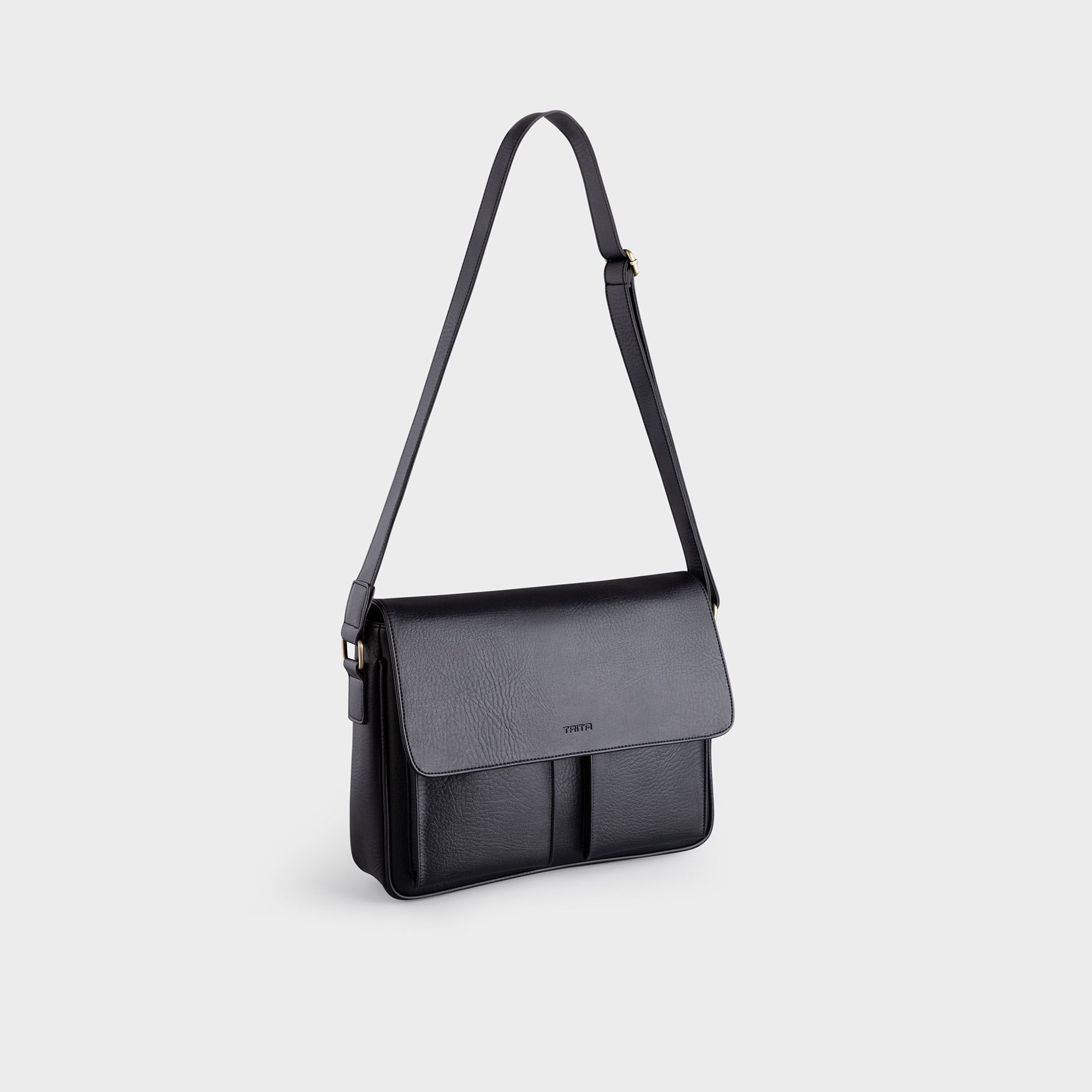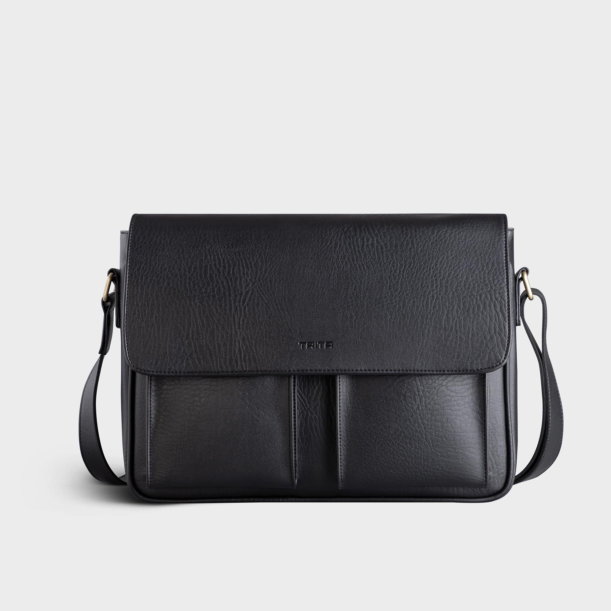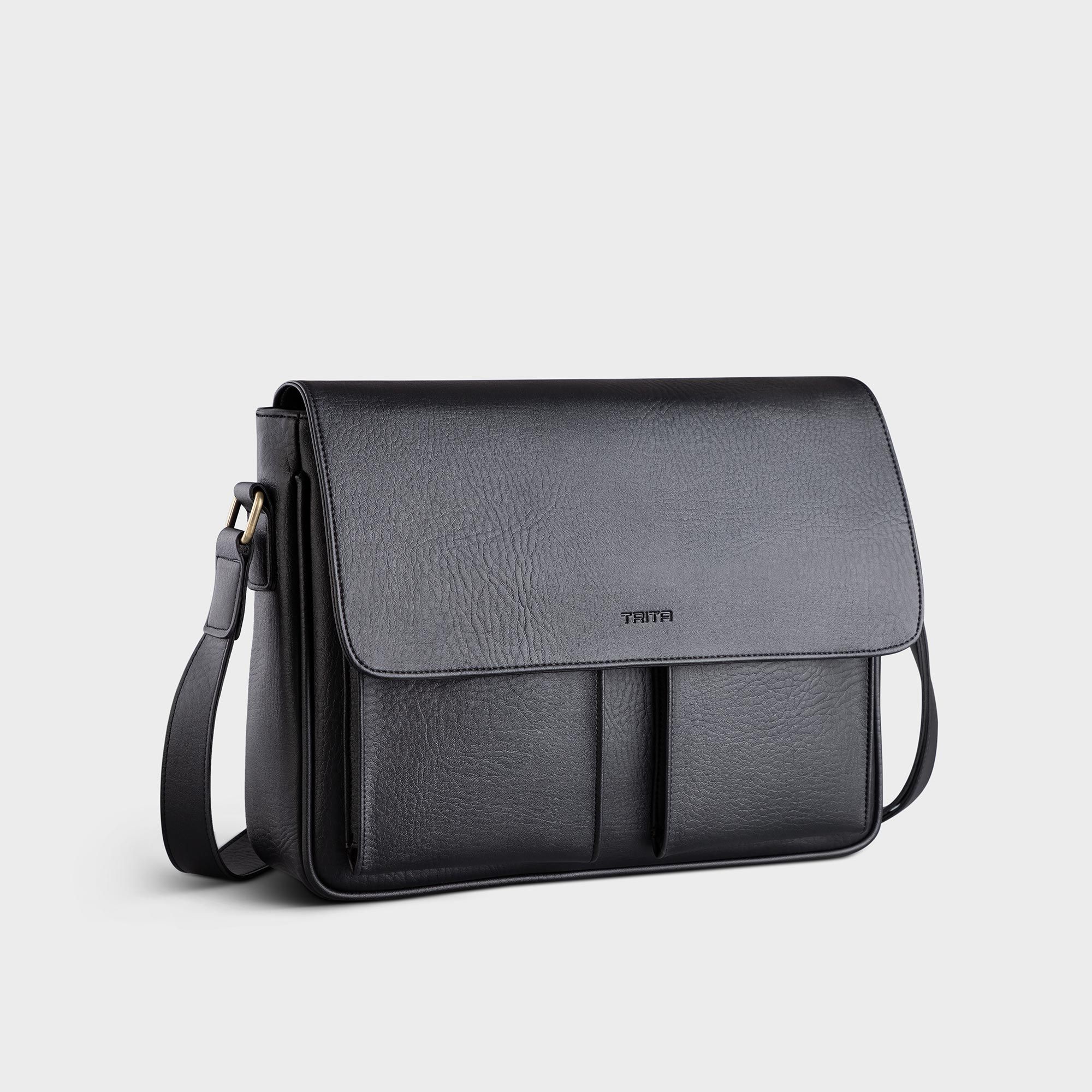 Túi Trita (Thời trang nam phối ngăn đôi - Túi đeo chéo da RTN6D) màu đen