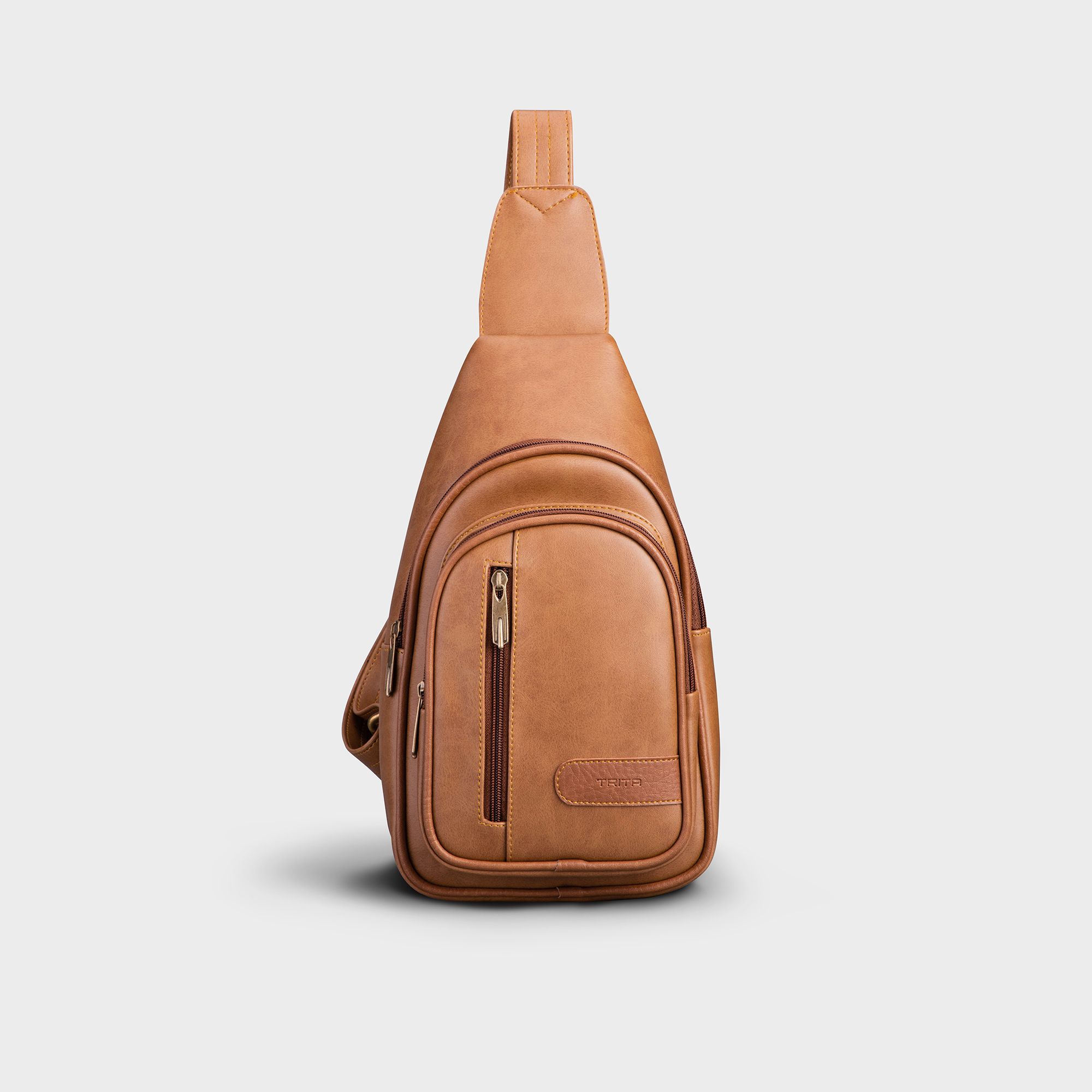 Balo Trita (Thời trang nam đi chơi - Balo đeo chéo da RBAC01BN) màu bò nhạt