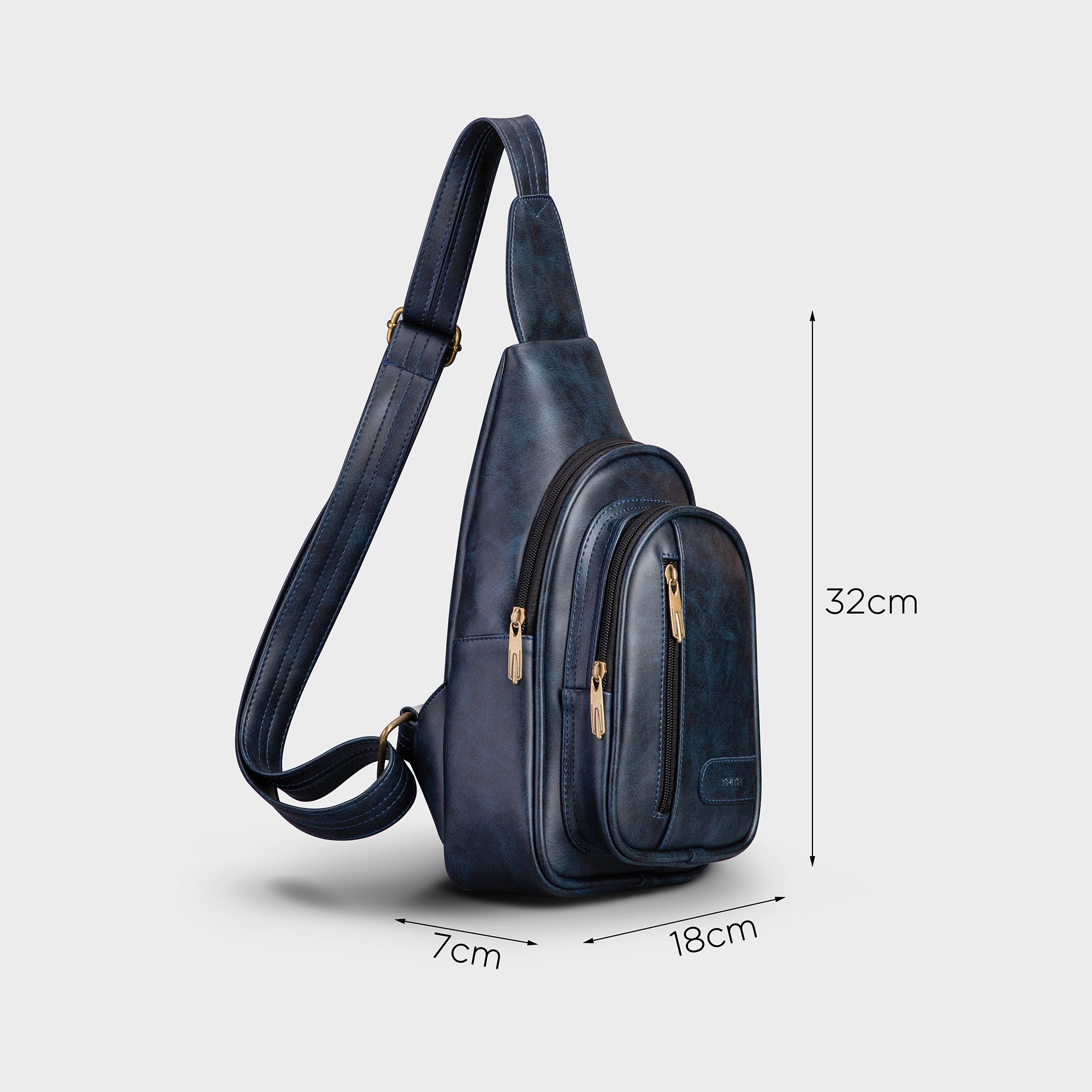 Balo Trita (Thời trang nam đi chơi - Balo đeo chéo da RBAC01X) màu Xanh đen