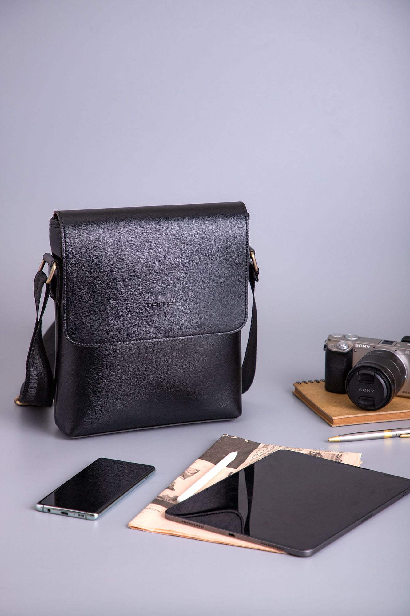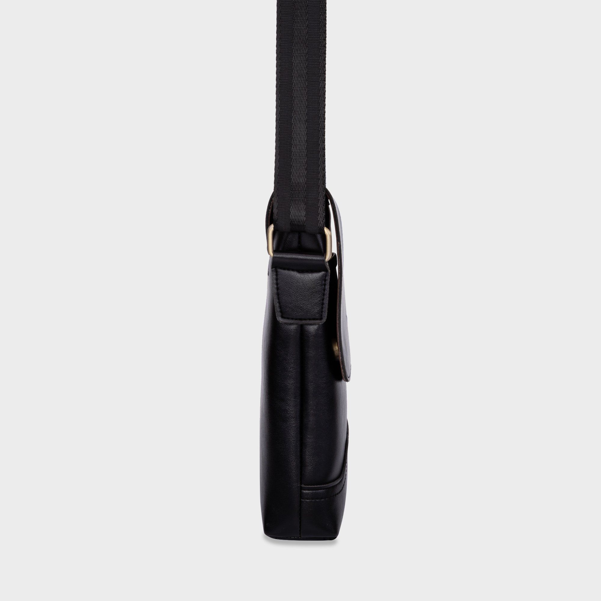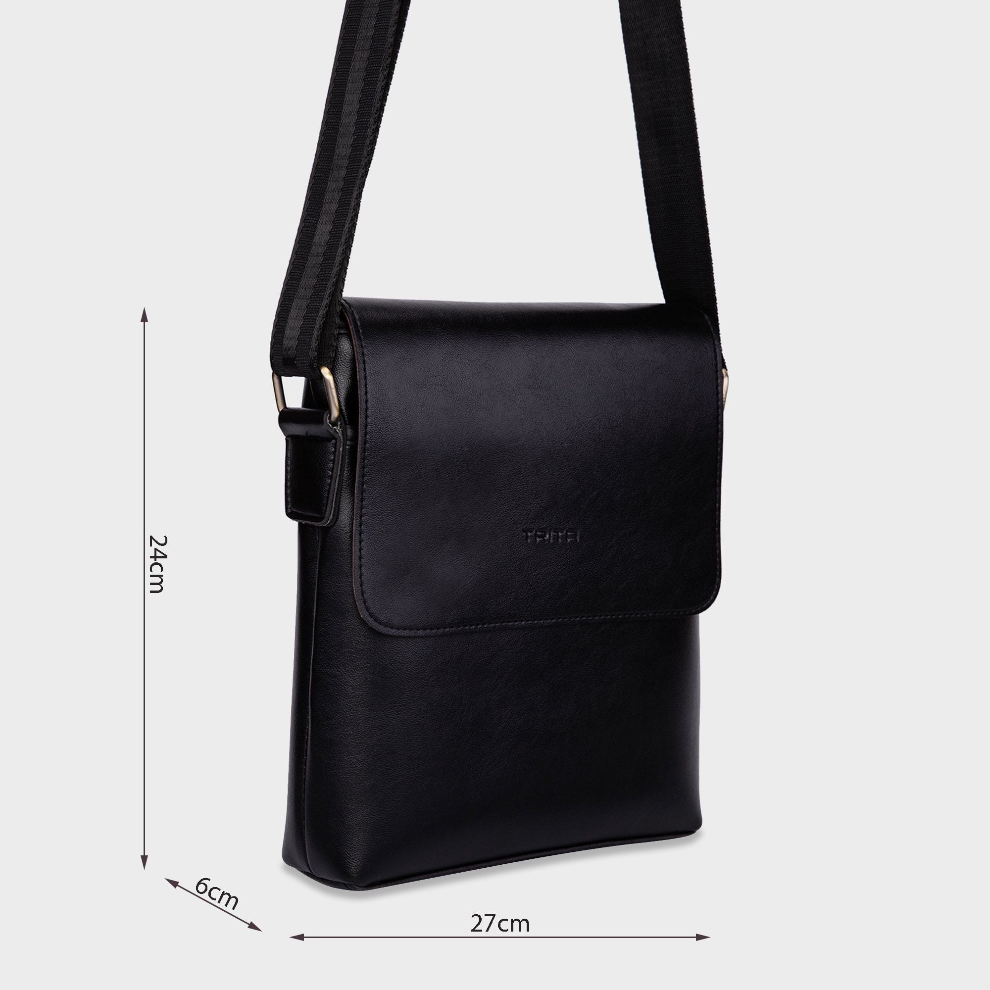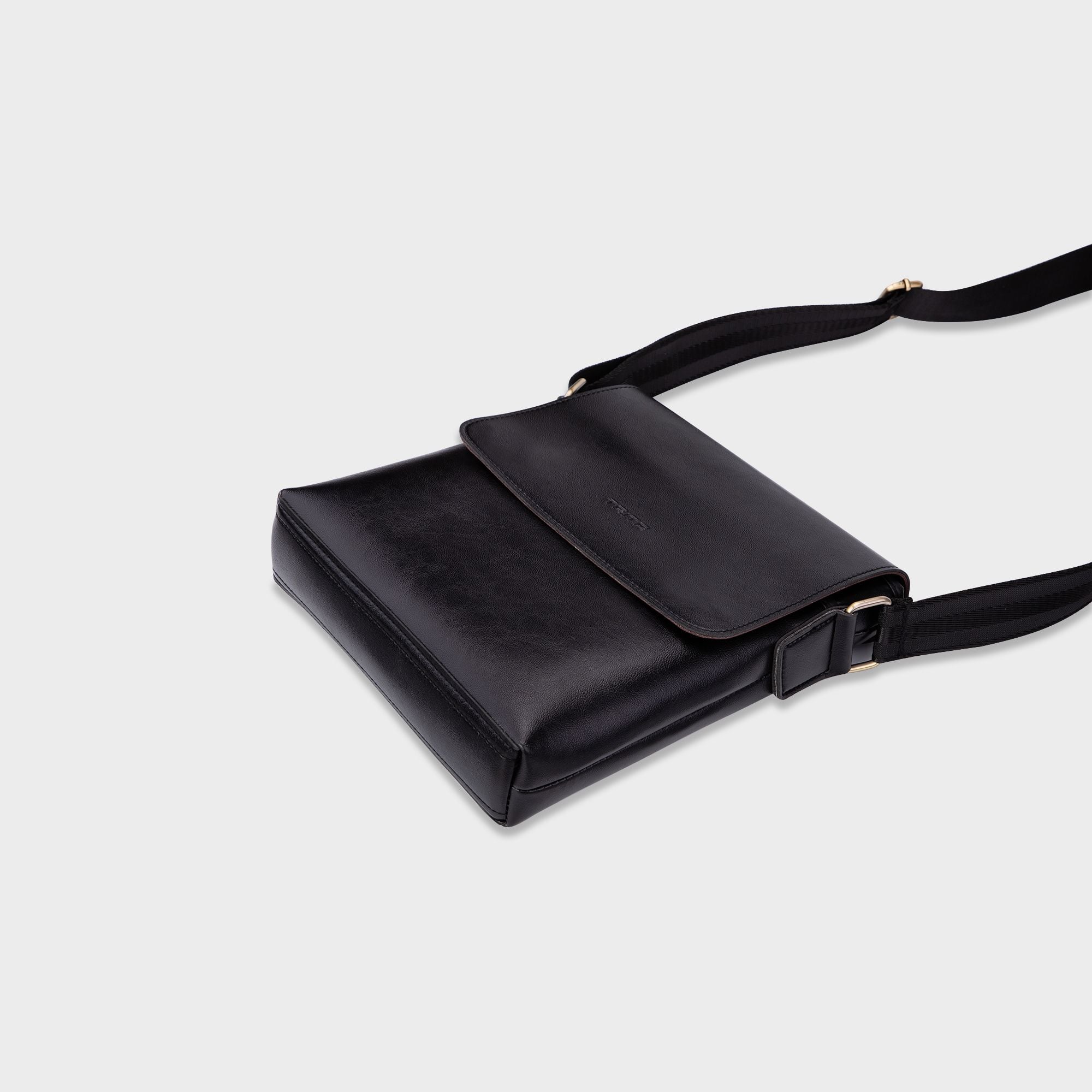 Túi Trita (Thời trang nam nắp gập - Túi đeo chéo da RTN1D) màu đen
