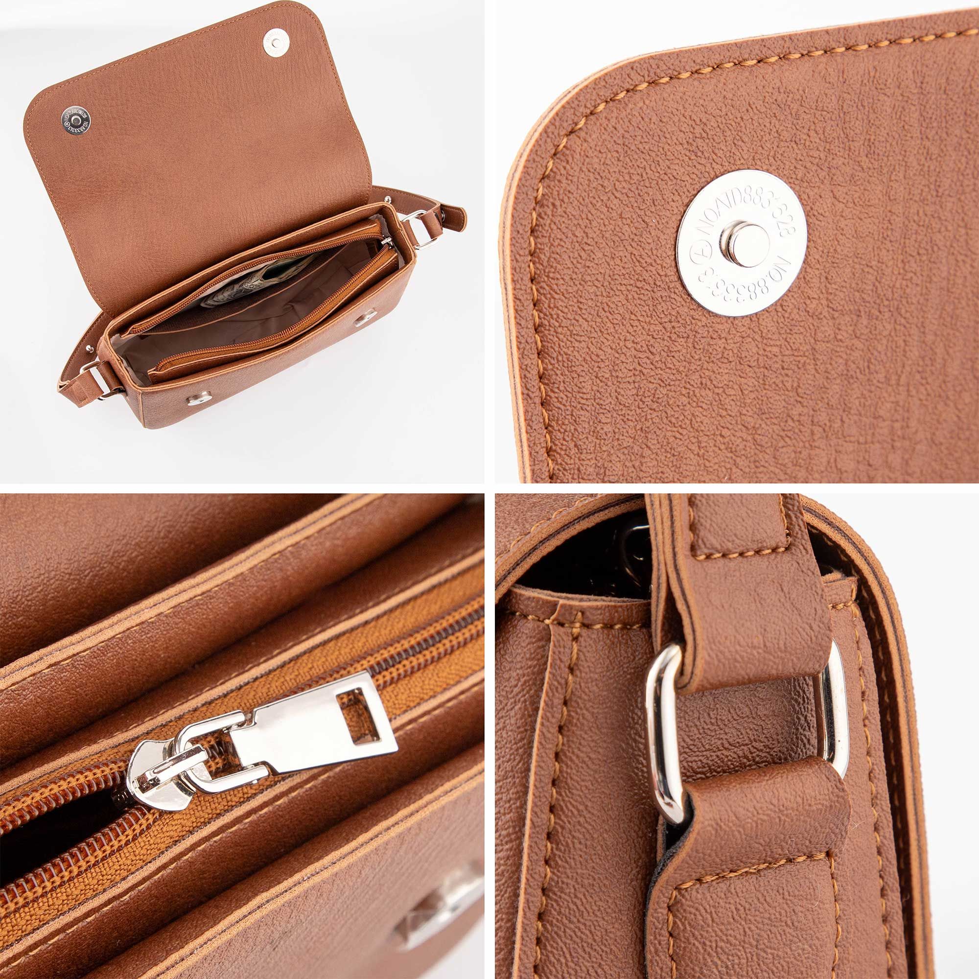 Túi Trita (Thời trang nữ dáng hộp nắp gập bo tròn viền size 23 - Túi đeo chéo da RHN162B) màu bò