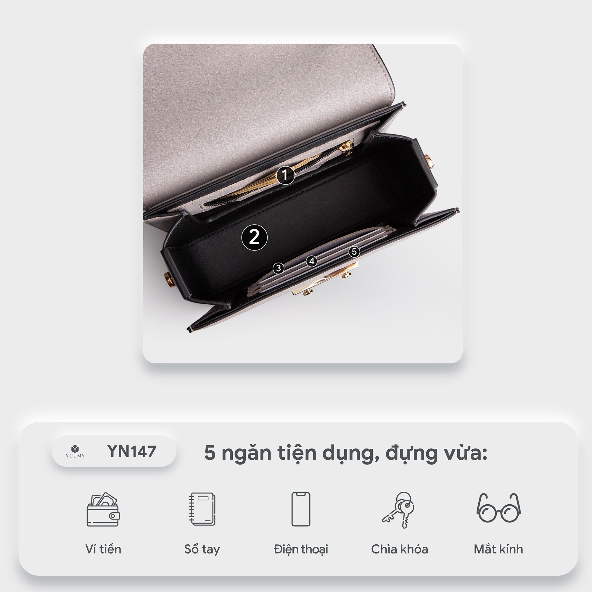 Túi Yuumy ( Thời trang nữ size 17 - Túi đeo chéo da Seasand YN147XM ) Màu xám