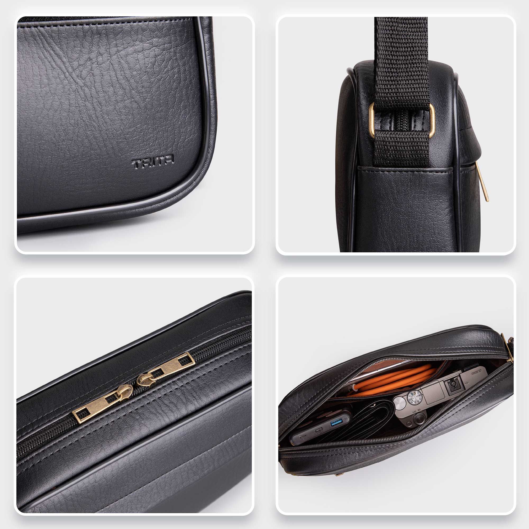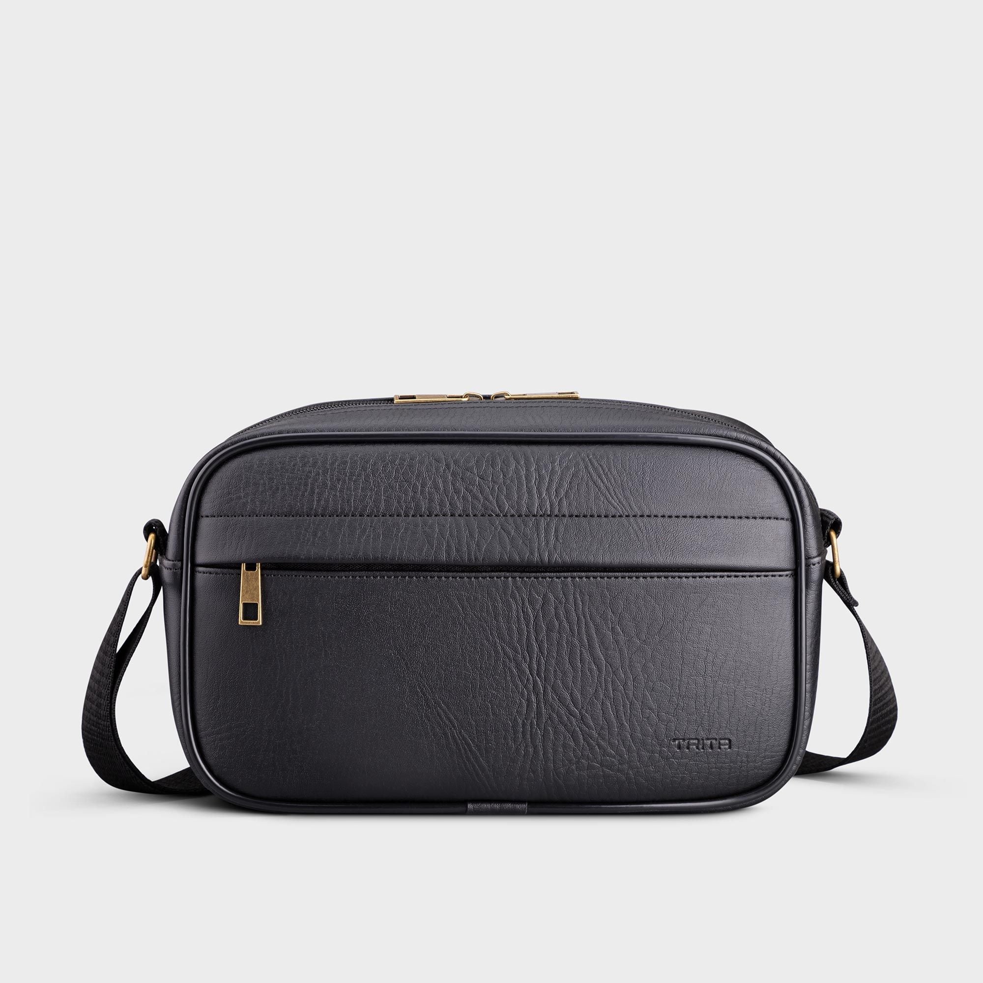 Túi Trita (Thời trang nam bo viền - Túi đeo chéo da RTN10D) màu đen