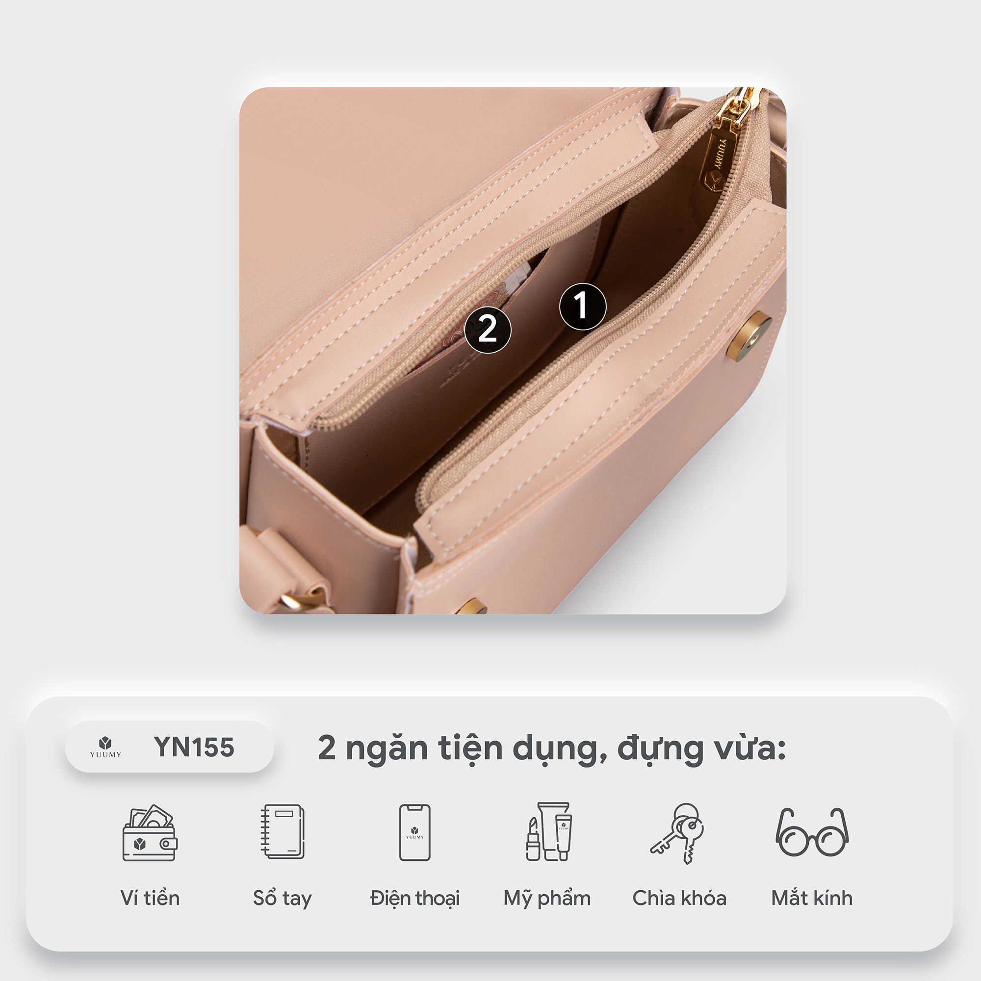 Túi Yuumy ( Thời trang nữ size 21 - Túi đeo chéo da YN155B ) - Bò