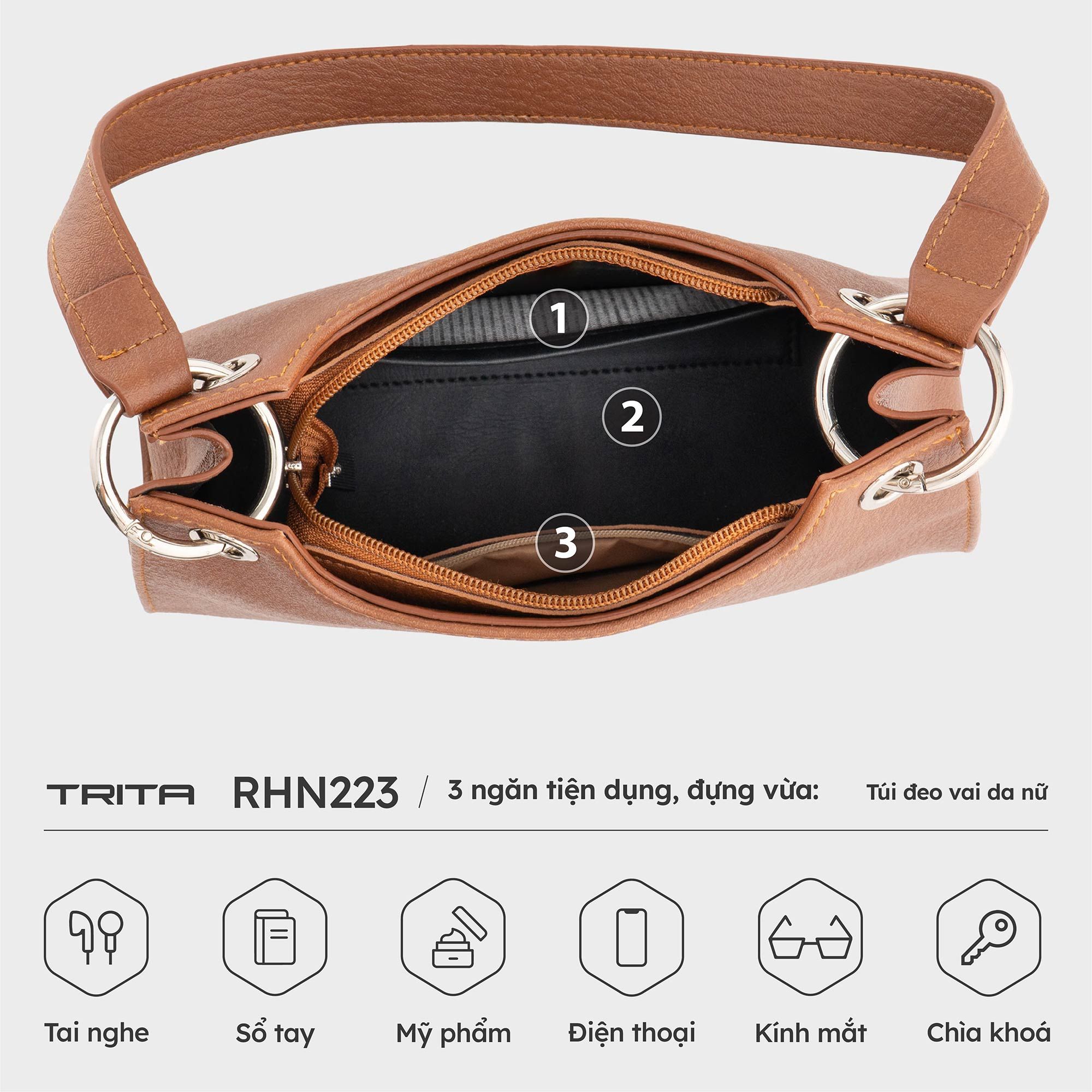 Túi Trita (Thời trang nữ quai ngắn phong cách - Túi đeo vai da RHN223D) màu đen