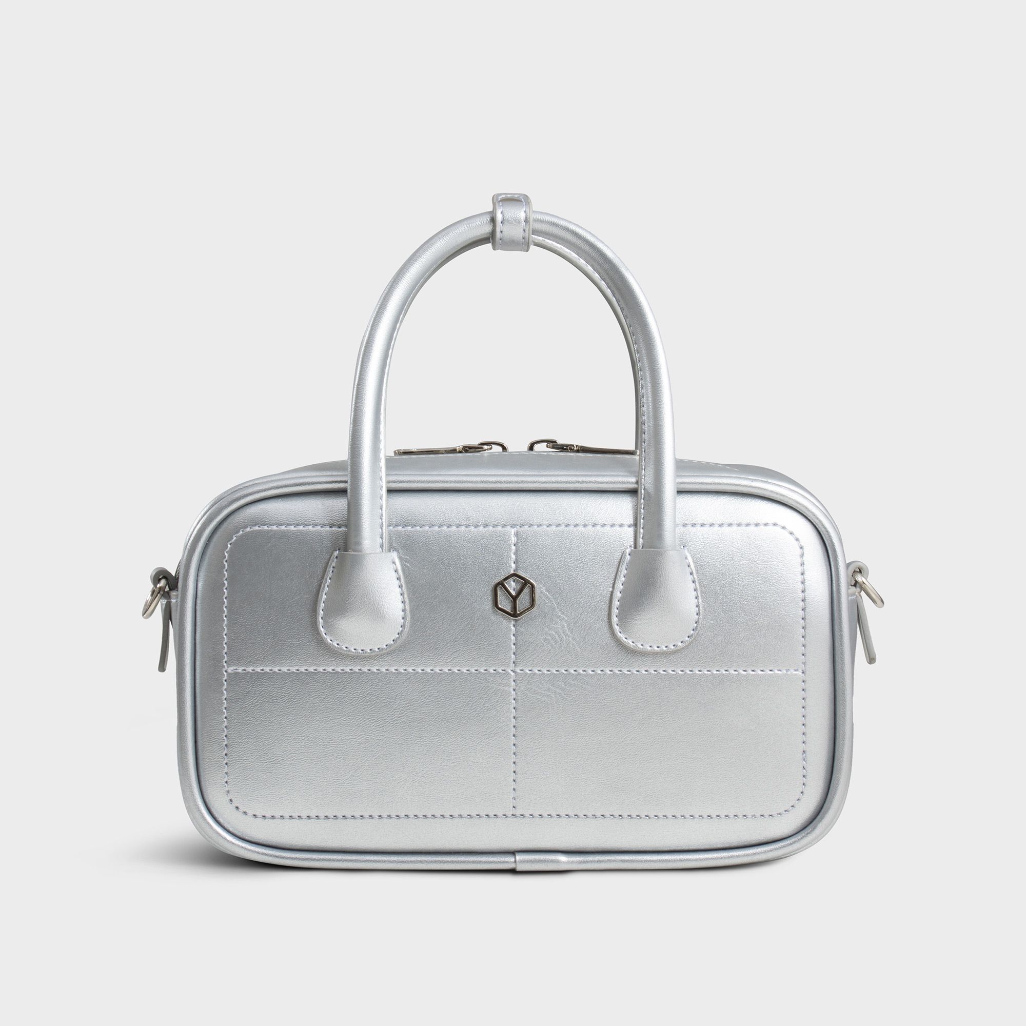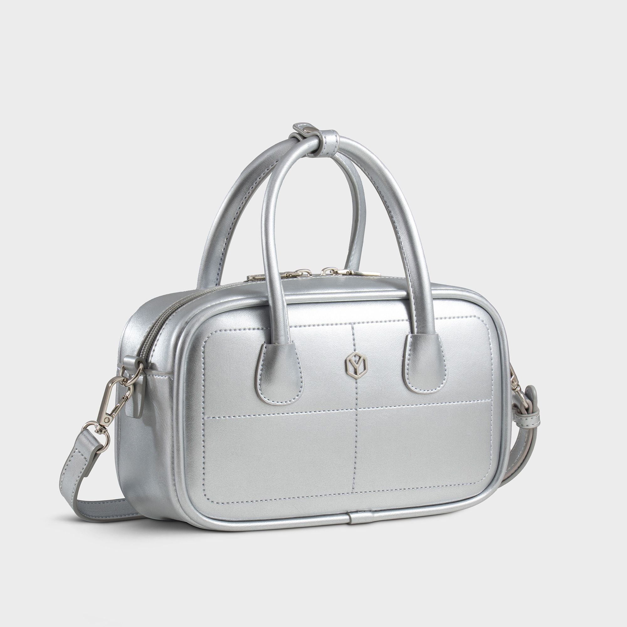 Túi Yuumy (Thời trang nữ bo góc phối chỉ nổi size 23 - Túi đeo chéo da Glossy YN303BC) màu bạc