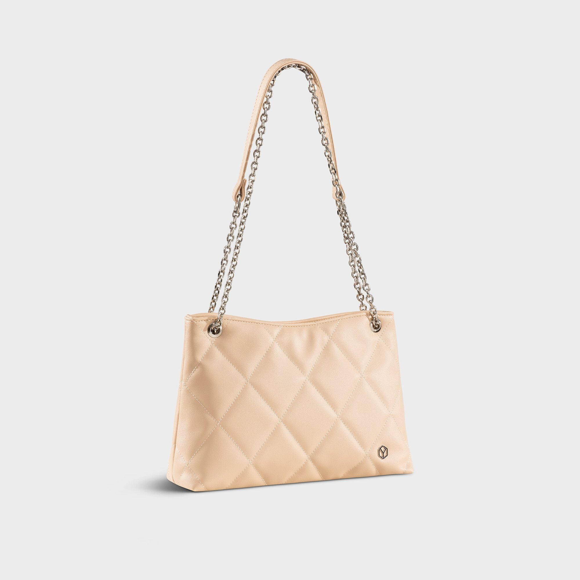 Túi Yuumy (Thời trang nữ chần bông quả trám size 28 - Túi đeo chéo da Seasand YN280K) màu kem