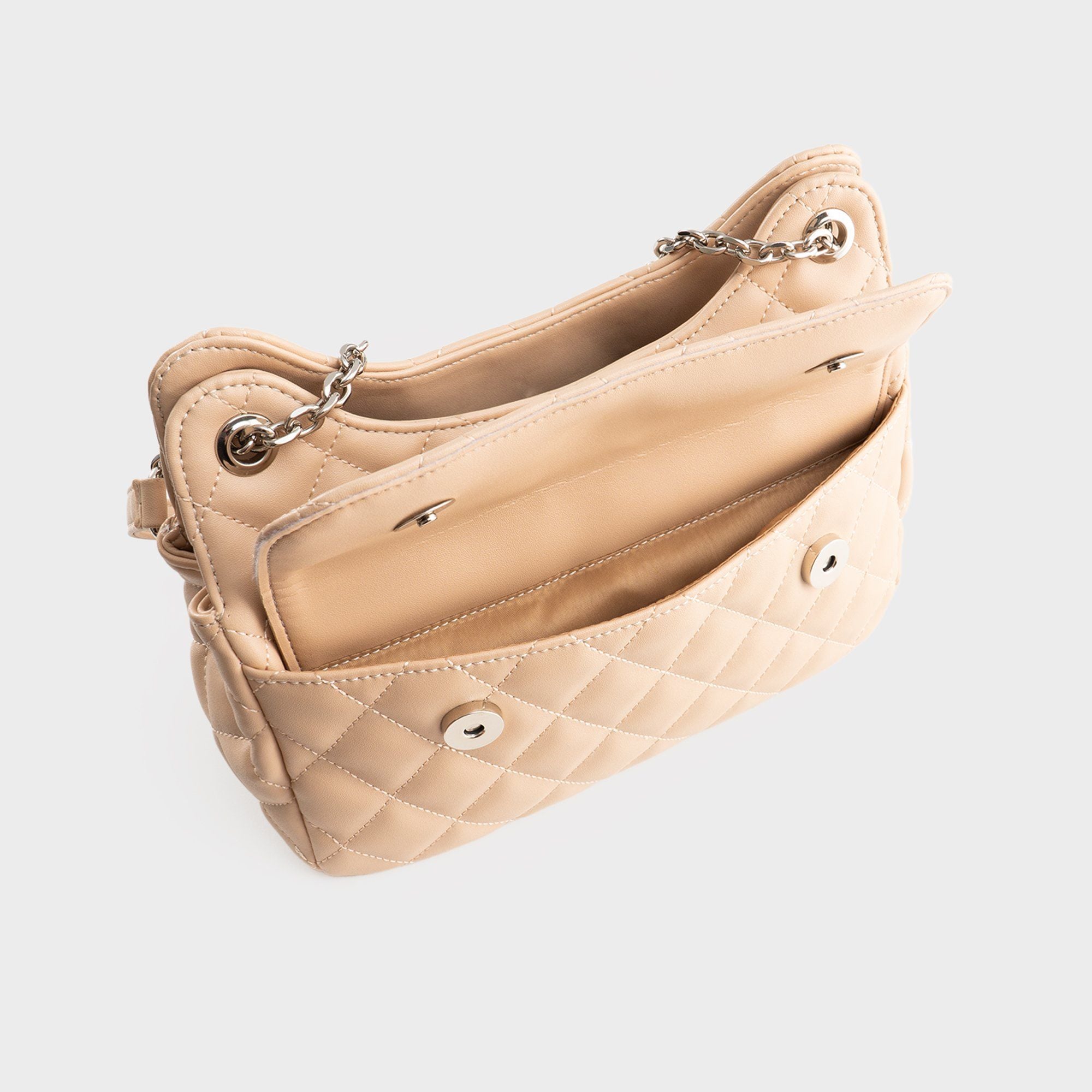Túi đeo chéo nữ chần bông phối dây xích YN241 với thiết kế mềm mại với chi tiết chần bông sang trọng, kết hợp cùng dây xích kim loại thời trang, giúp nàng nổi bật trong mọi khoảnh khắc – từ dạo phố đến dự tiệc nhẹ. Dây đeo được phối xích bạc linh hoạt vừa có thể đeo chéo hoặc đeo vai gọn gàng. Ngăn chính có thể đựng vừa điện thoại, ví mini, son, phấn, thẻ và những vật dụng nhỏ cần thiết mỗi ngày.