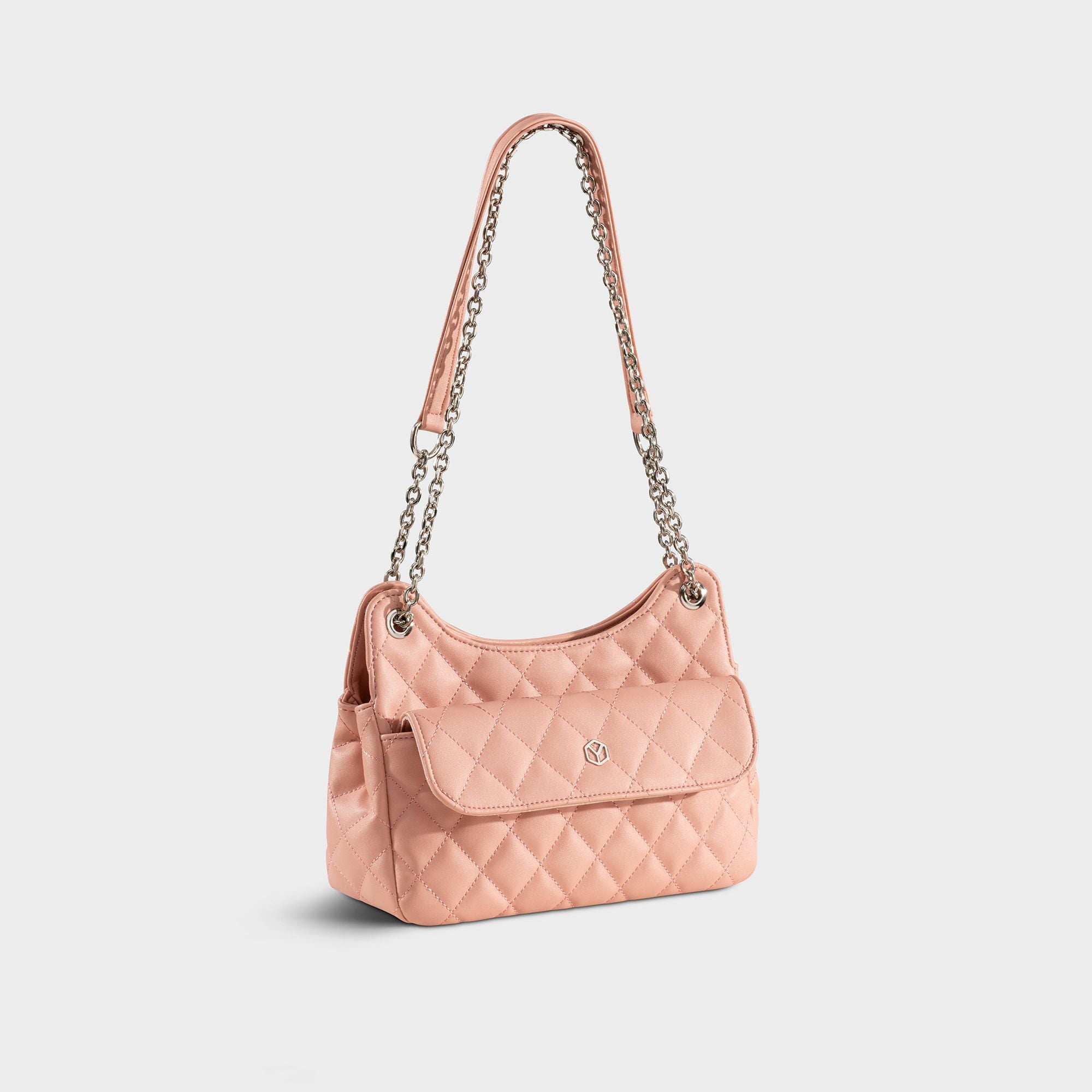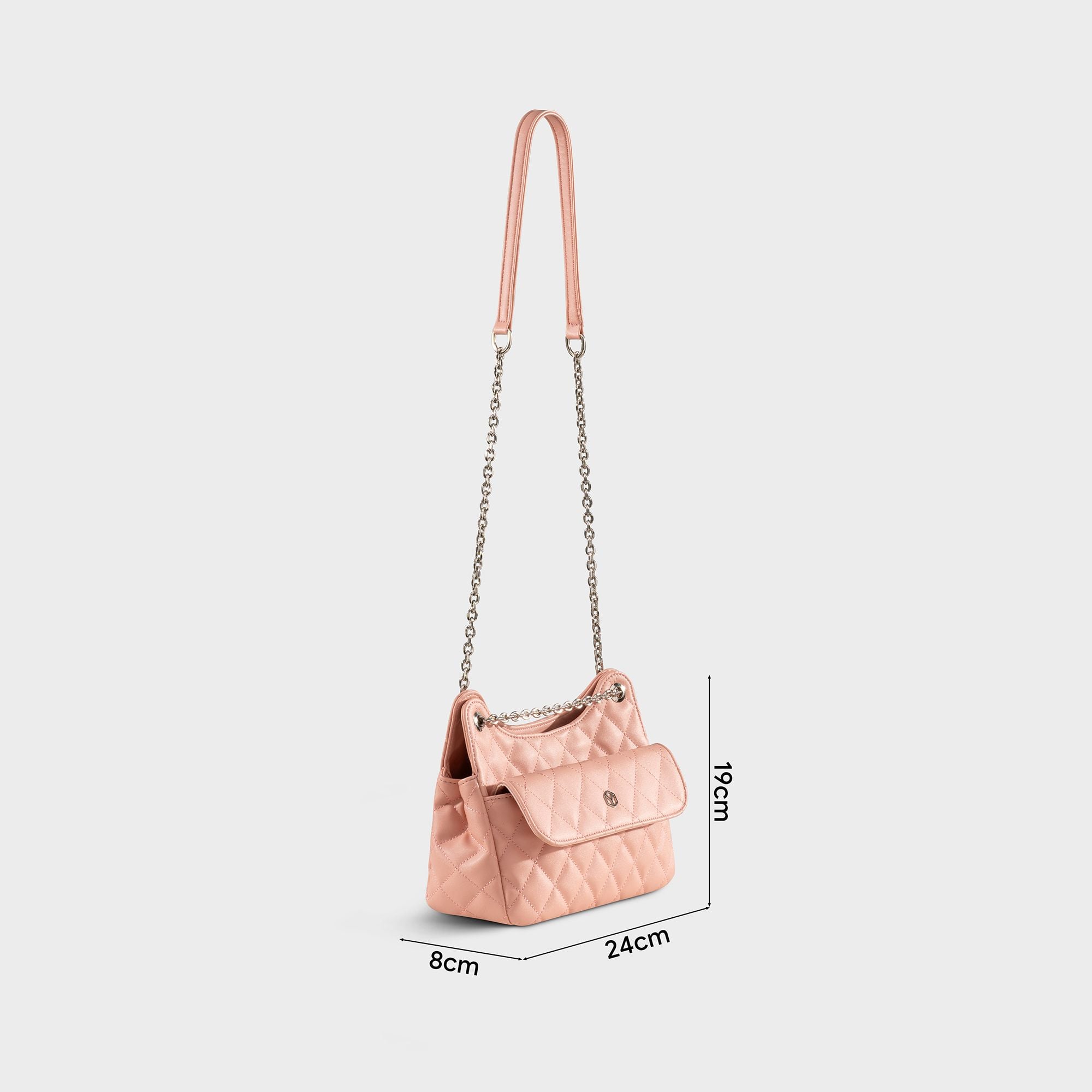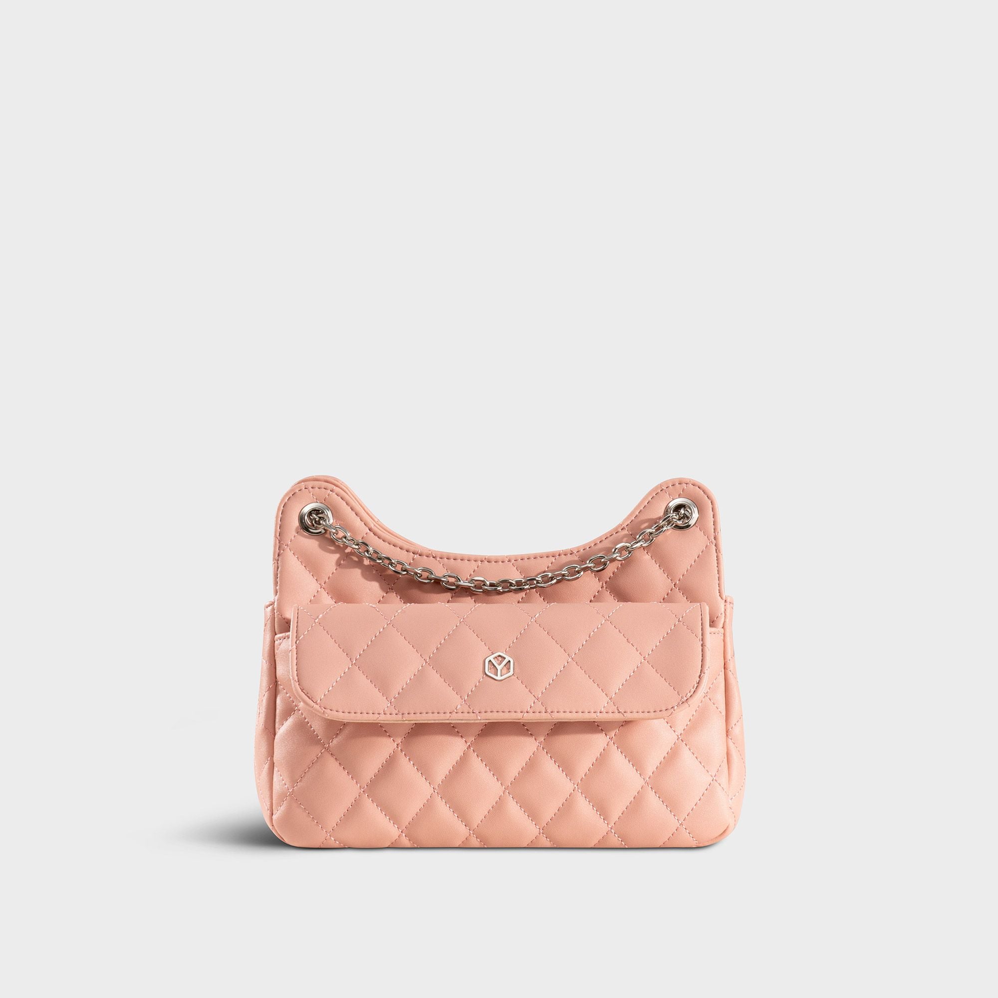 Túi Yuumy (Thời trang nữ da chần bông phối dây xích size 24 - Túi đeo chéo da Seasand YN241HP) màu hồng phấn