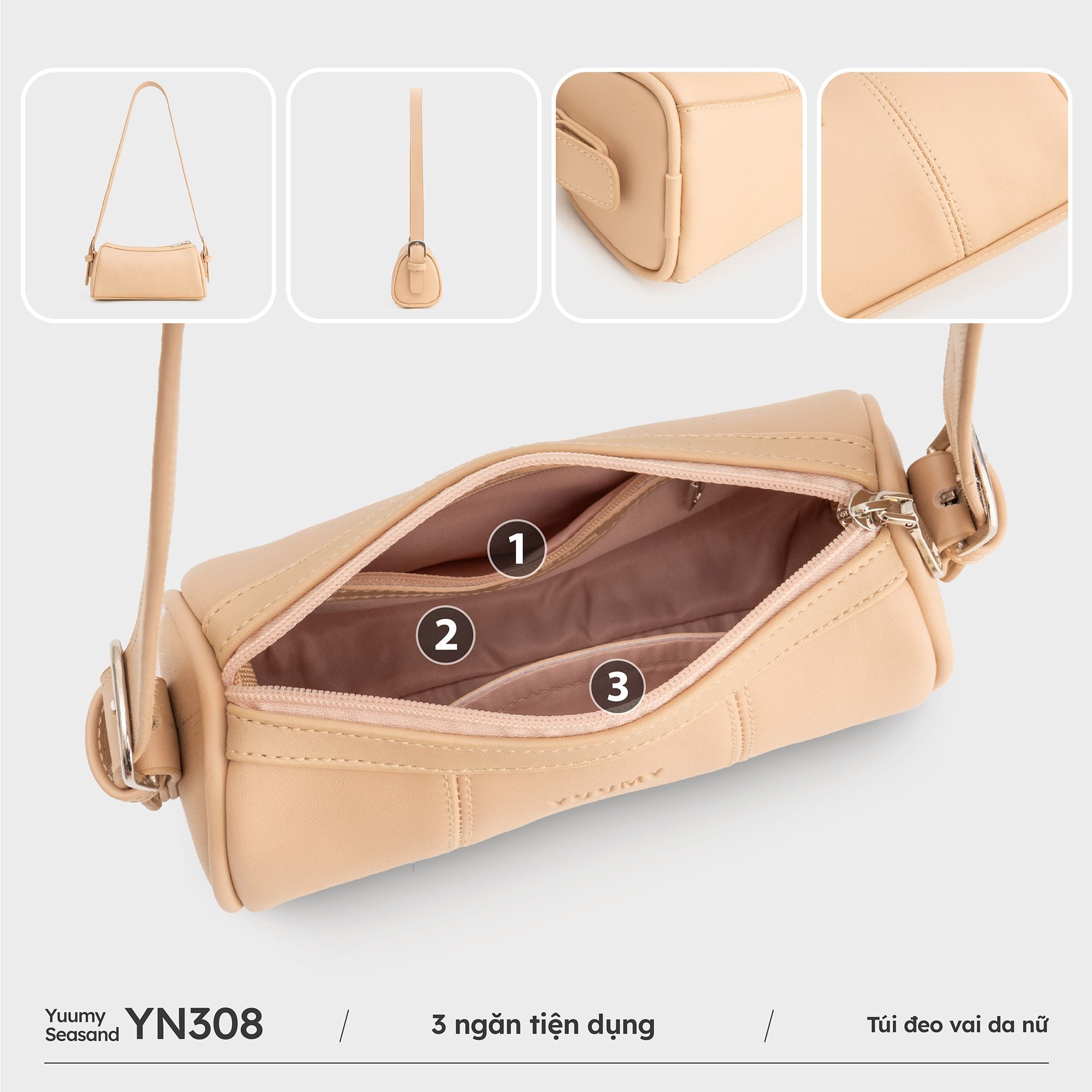 Khẳng định gu thẩm mỹ với chiếc túi Yuumy YN308 thanh mảnh và cá tính. Thiết kế dáng dài độc đáo, bo cong mềm mại, kết hợp quai đeo bản vừa giúp nàng dễ dàng khoác vai hay cầm tay đầy sang chảnh. Chất liệu da tổng hợp cao cấp cùng bảng màu trendy biến chiếc túi trở thành trợ thủ thời trang nâng tầm mọi outfit hàng ngày. Kích thước gọn nhẹ nhưng vẫn vừa vặn cho điện thoại, ví mini, son môi và những vật dụng nhỏ xinh – đồng hành cùng nàng trong mọi khoảnh khắc từ dạo phố, đi làm đến tiệc tối.