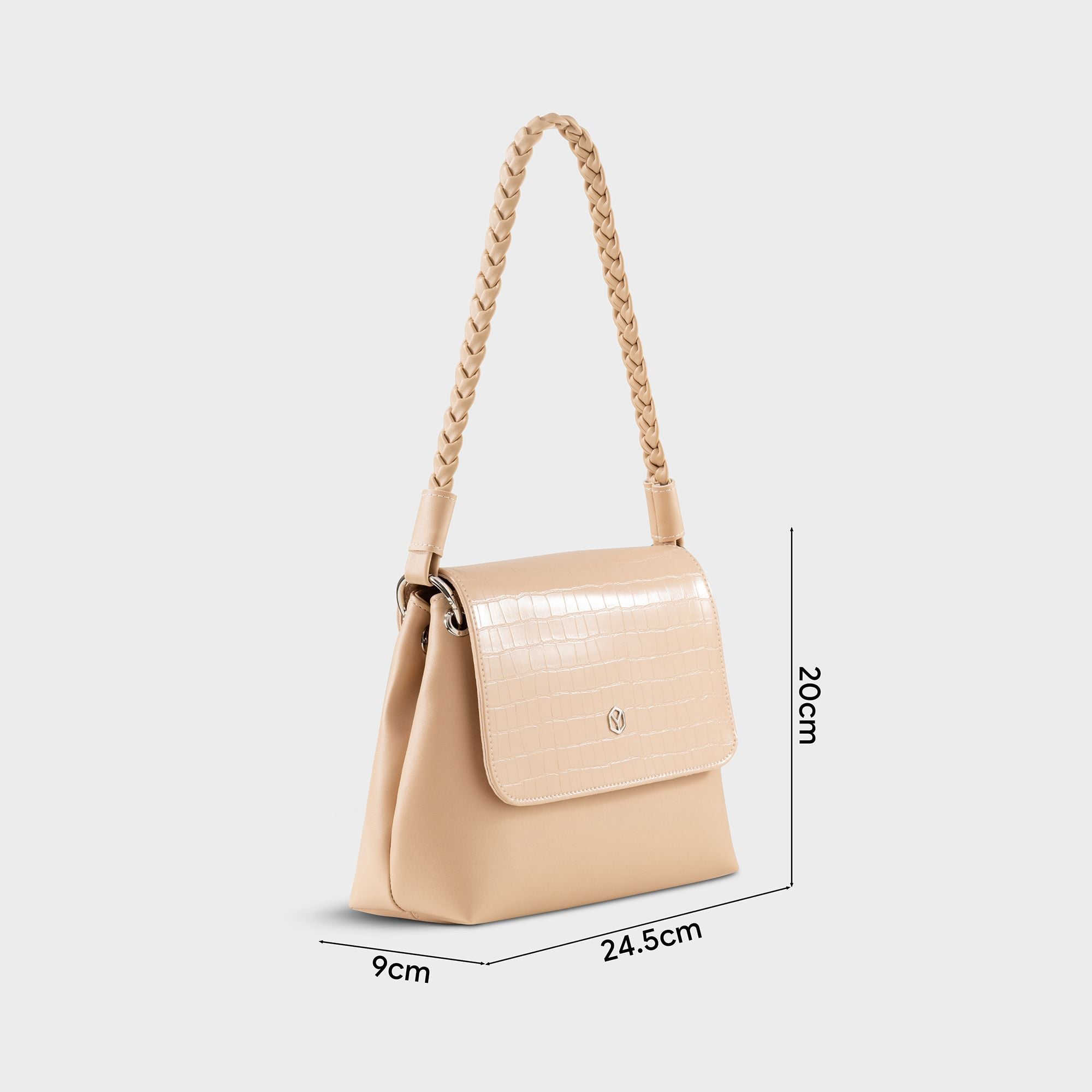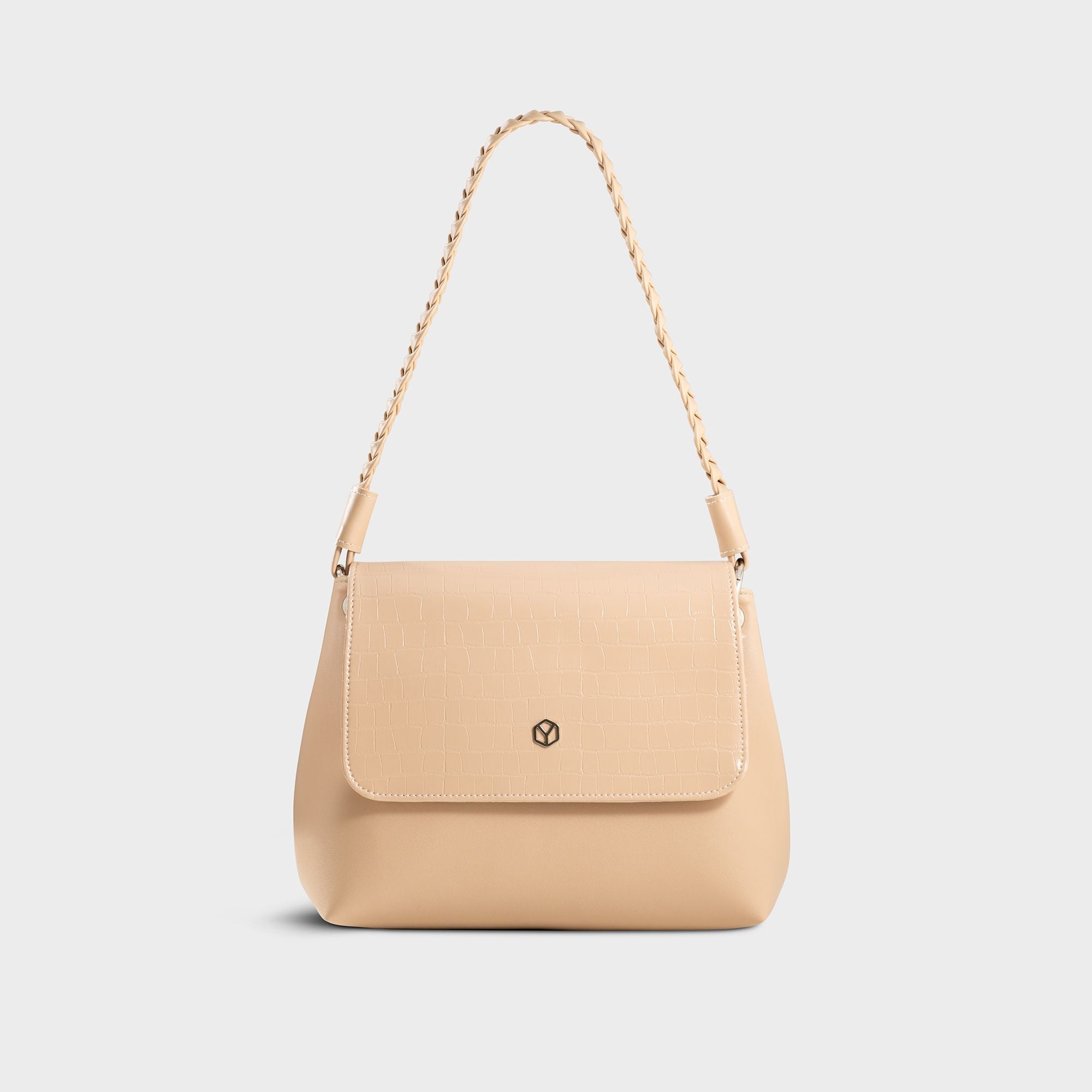 Túi Yuumy (Thời trang nữ dáng vuông nắp gập sang trọng - Túi đeo vai da Seasand YN341K) màu kem