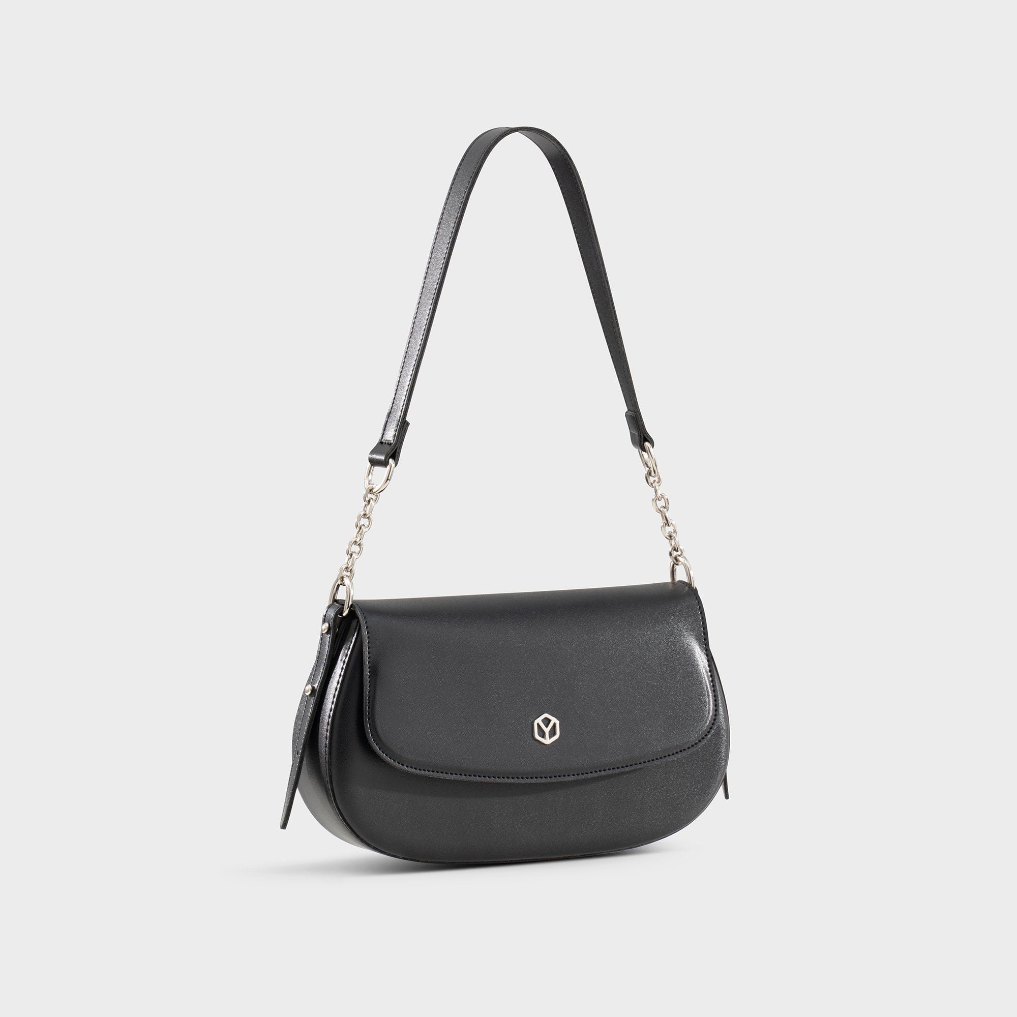 Túi Yuumy (Thời trang nữ nắp gập dáng cong size 24 - Túi đeo vai da Seasand YN340D) màu đen