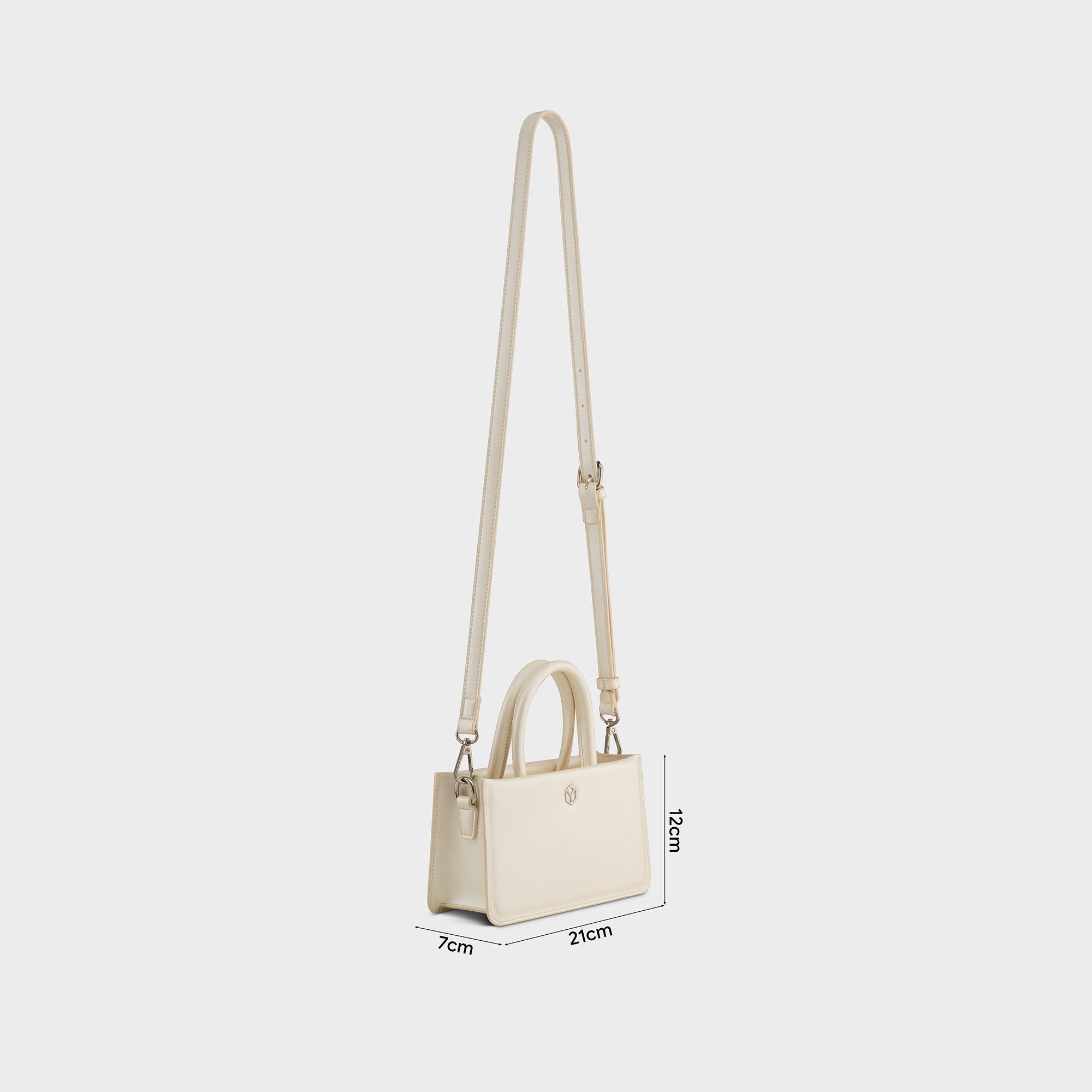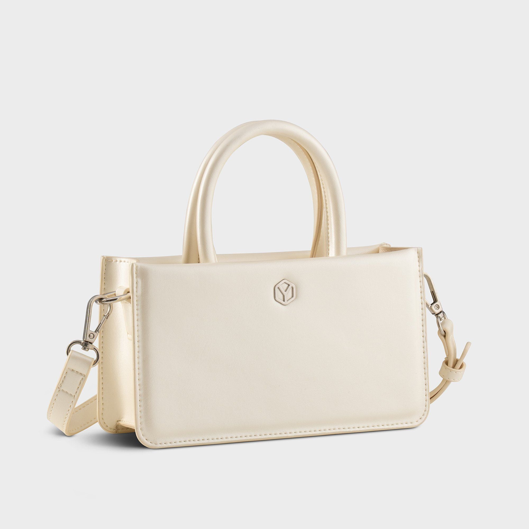 Túi Yuumy (Thời trang nữ phối quai xách size 21 - Túi đeo chéo da Glossy YN288TT) màu trắng ngọc trai
