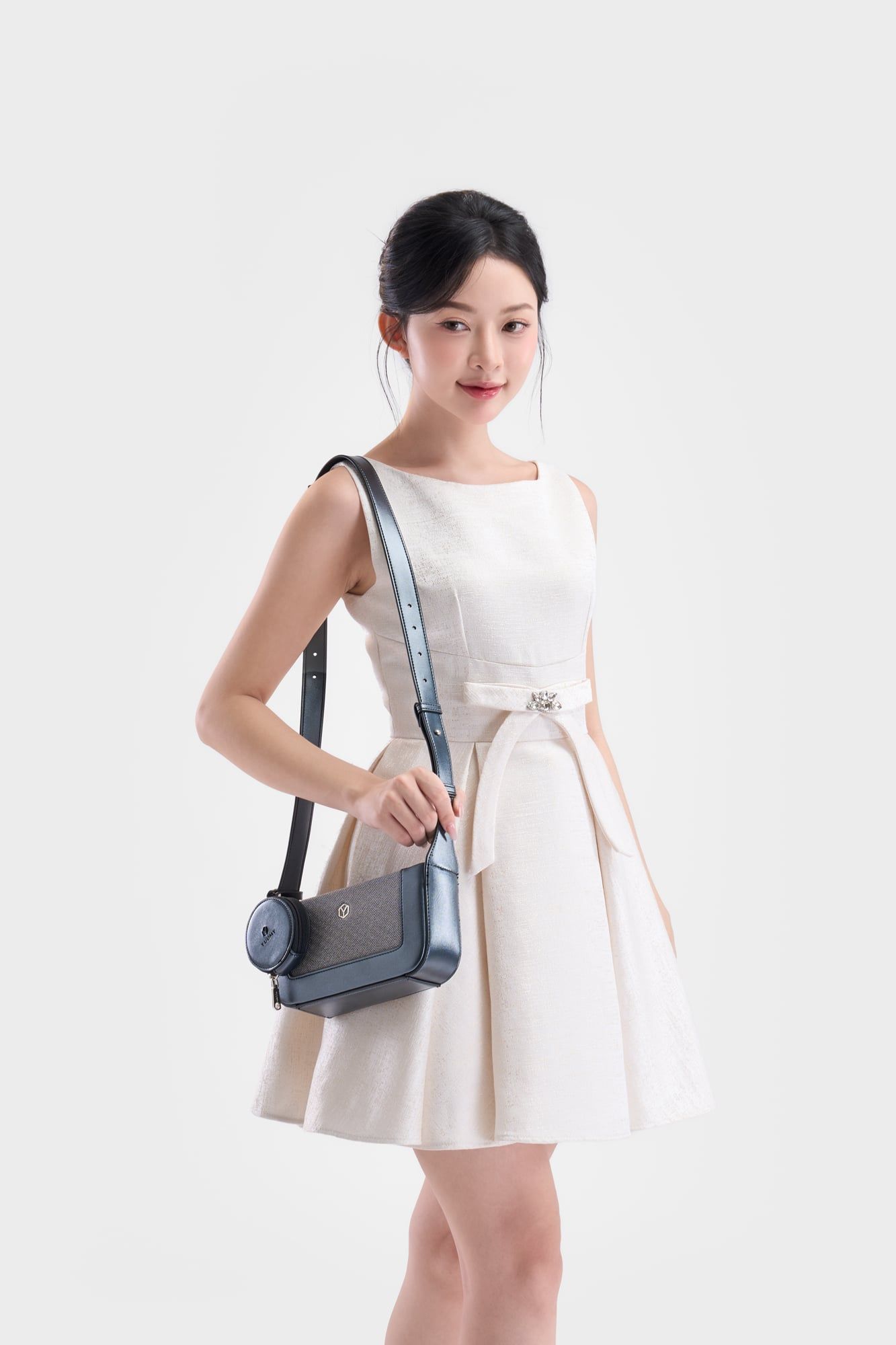 Túi Yuumy (Thời trang nữ size 22 phối ví mini - Túi đeo chéo da Glossy YN346BC) màu bạc