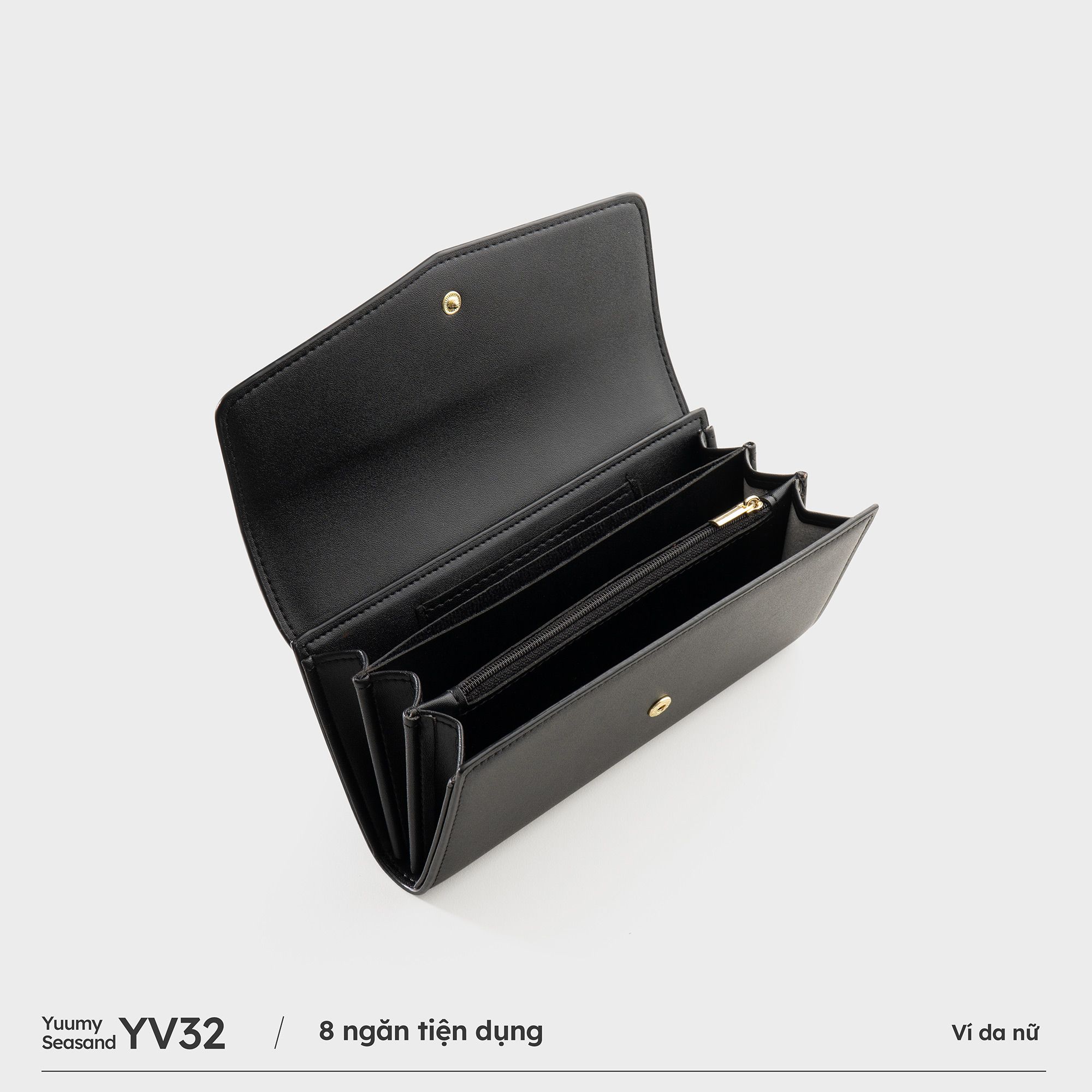 Ví Yuumy (Thời trang nữ cầm tay - Ví da Seasand YV32D) màu đen