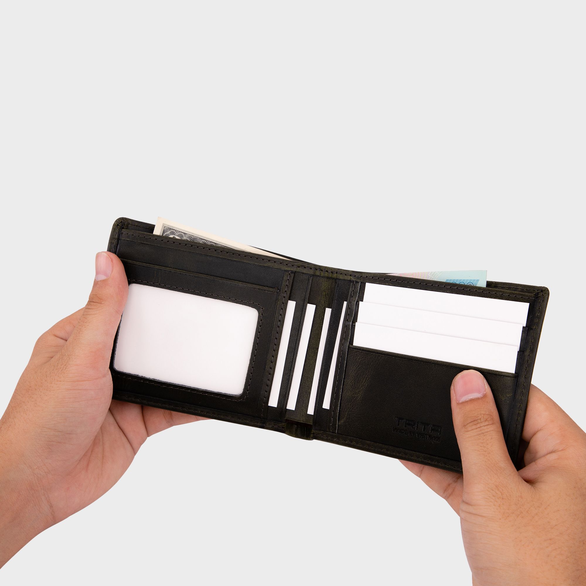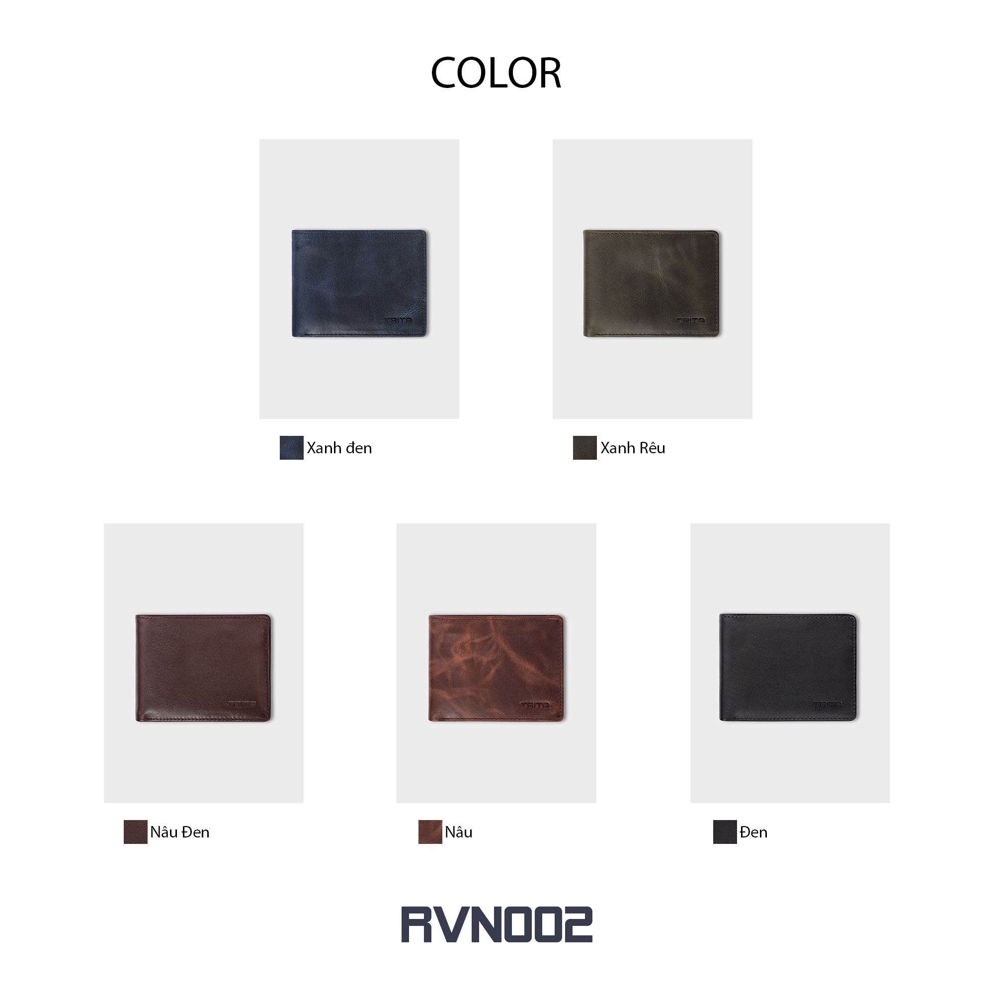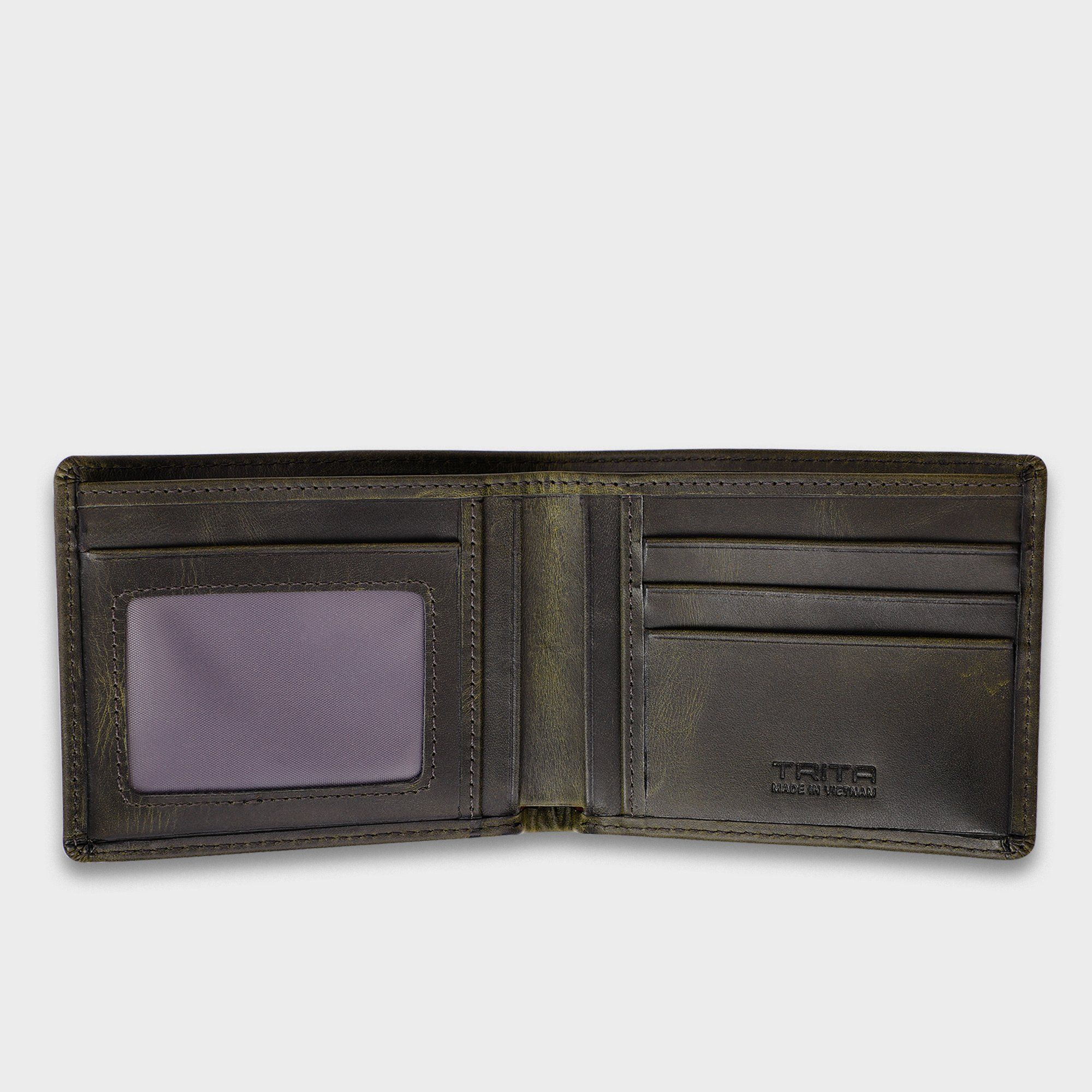 Ví nam da bò Trita (Thời trang nam dáng ngang - Ví da RVN002XR) màu Xanh rêu