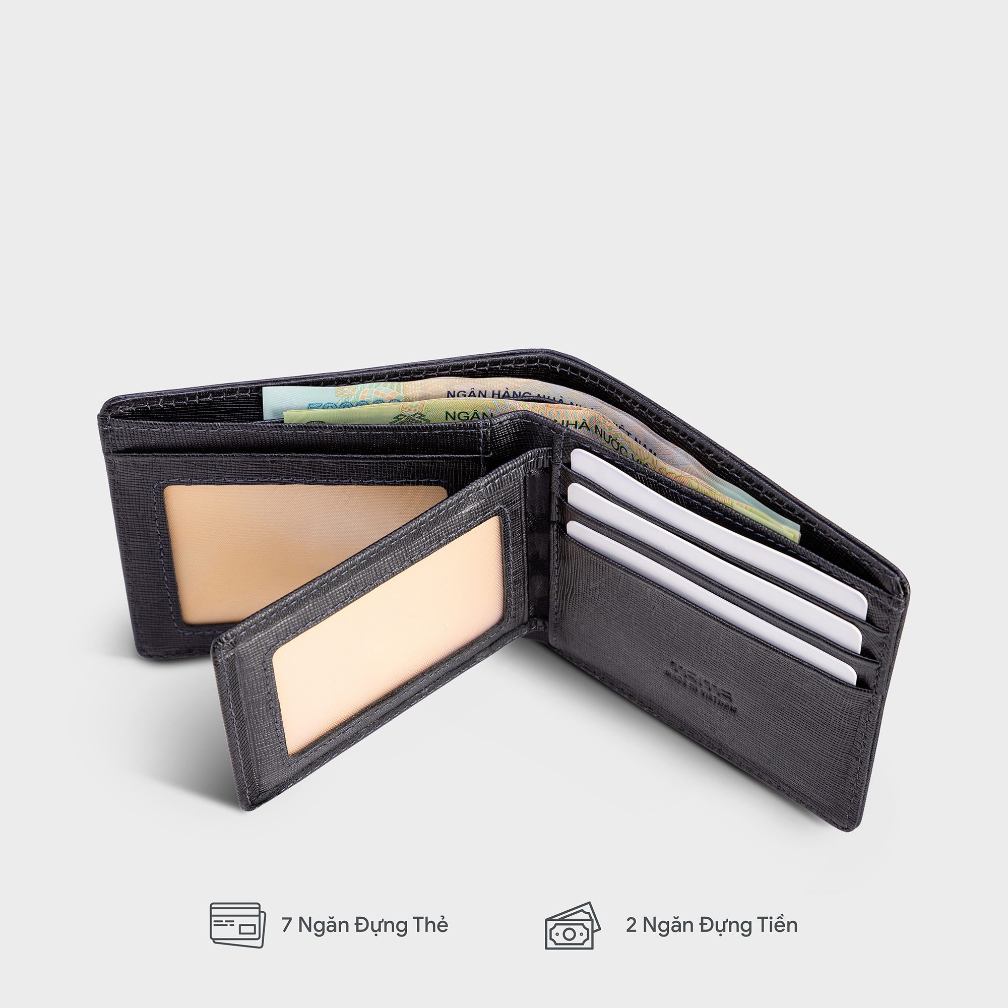 Công dụng: Đựng vừa 7 thẻ ATM, tiền mặt và giấy tờ tùy thân, CMT mới/cũ...