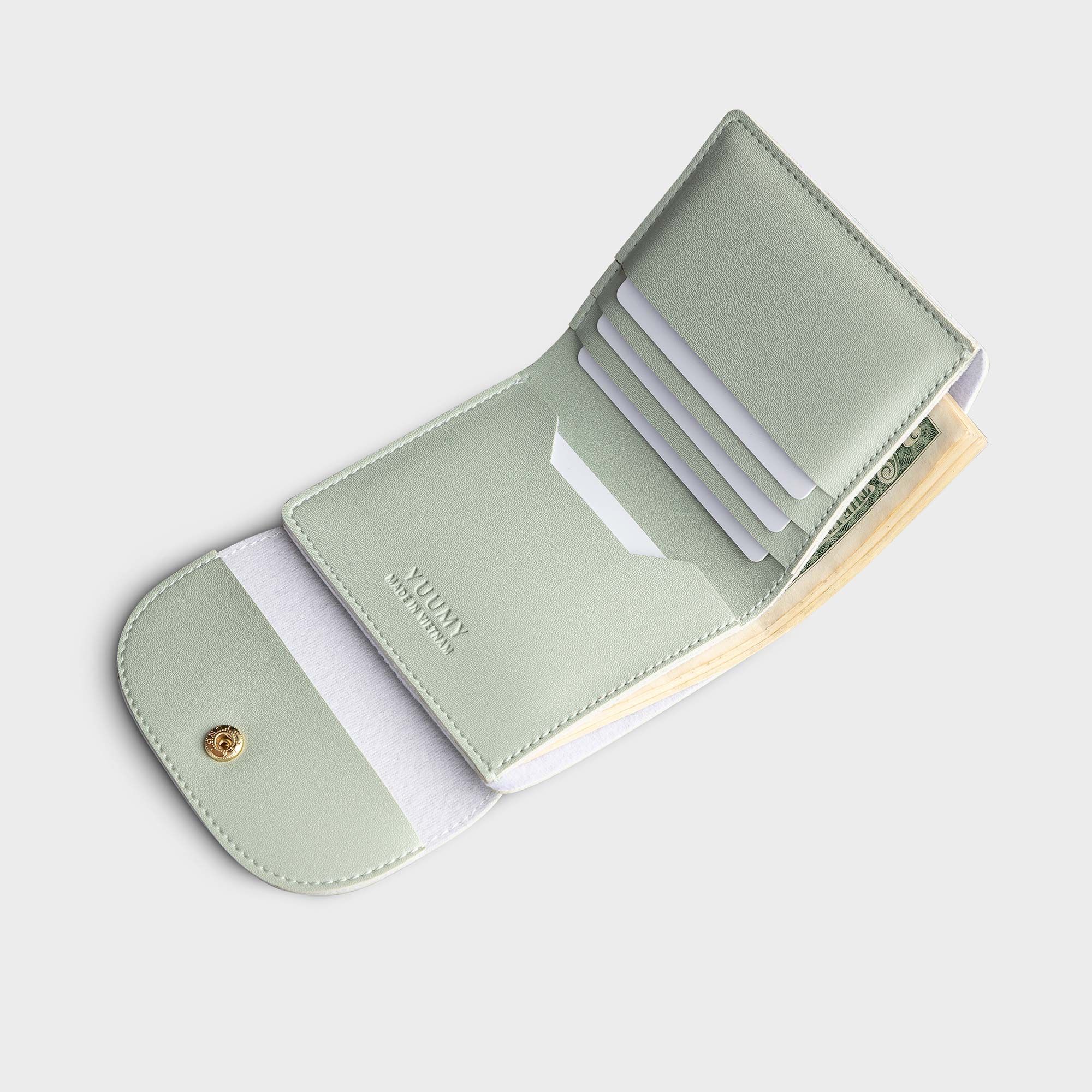 Ví da nữ cầm tay nhỏ gọn Yuumy Seasand YV58 được thiết kế gập đôi, phối nắp gập nút bấm chắc chắn. Kích thước nhỏ gọn với nhiều ngăn tiện dụng giúp bạn có thể đựng vừa nhiều thẻ card và tiền mặt.