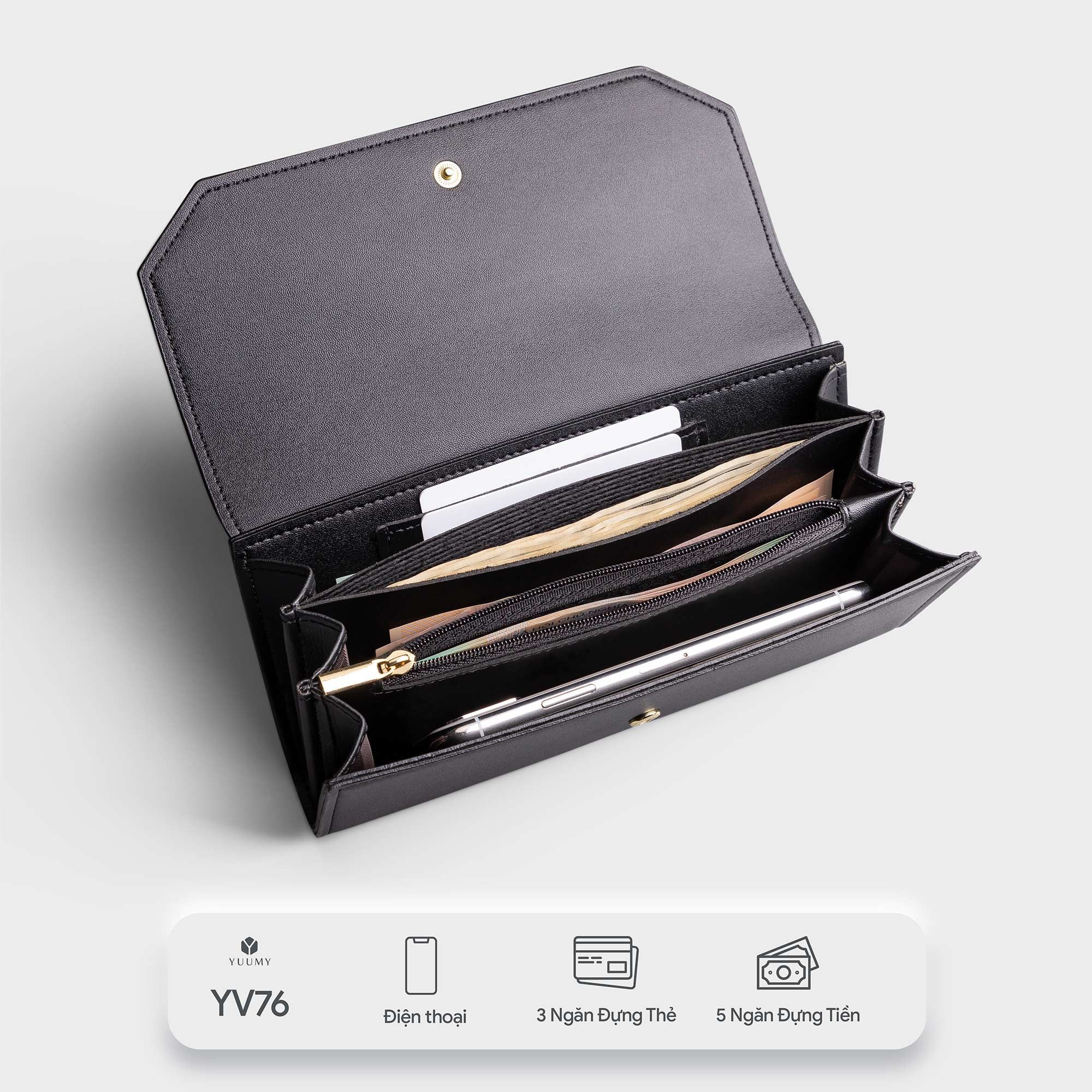 Ví Yuumy ( Thời trang nữ cầm tay dáng dài - Ví da Seasand YV76D )Màu đen