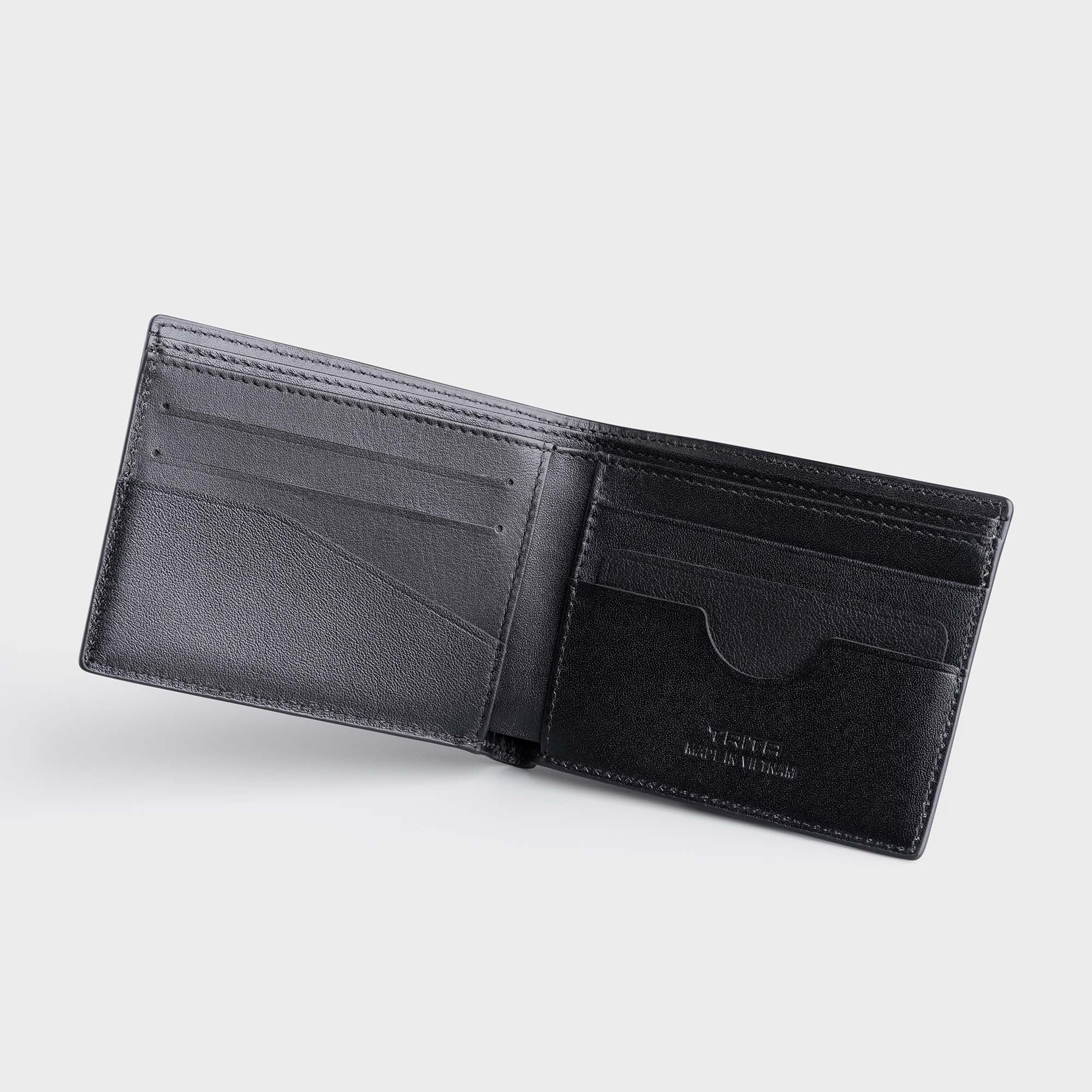Ví nam da bò Trita (Thời trang nam dáng ngang basic - Ví da RVN23D) màu đen
