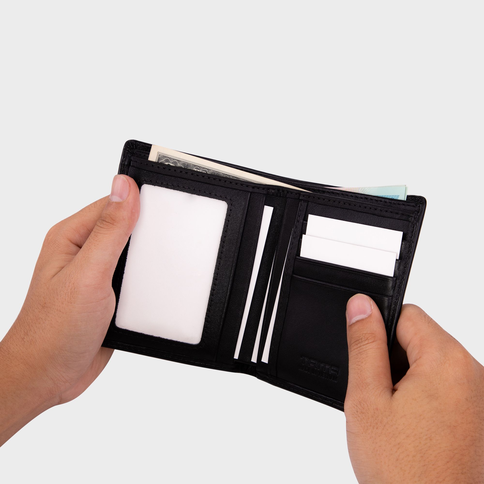 Ví nam da bò Trita (Thời trang nam gấp 2 tiện dụng - Ví da RVN001D) màu đen