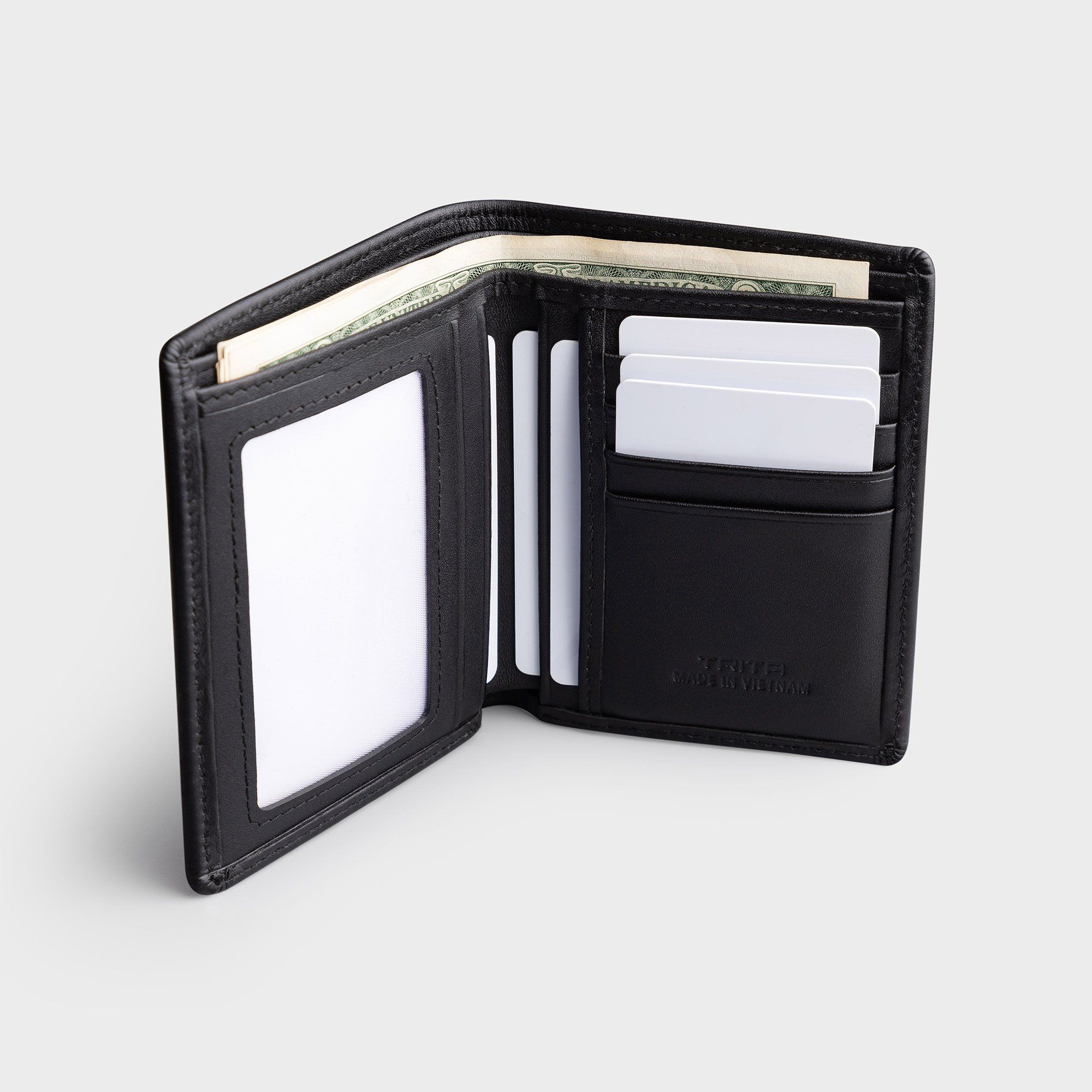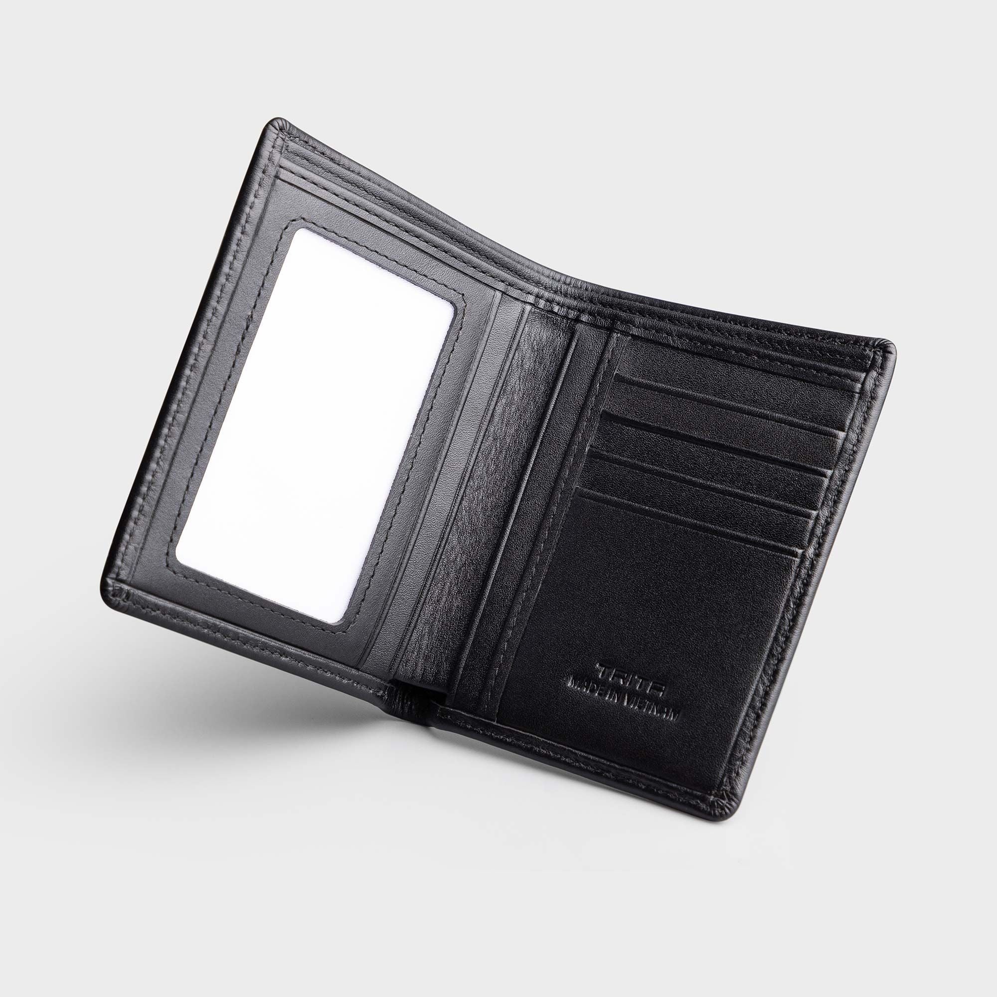 Ví nam da bò Trita (Thời trang nam dáng đứng - Ví da RVN20D) màu đen